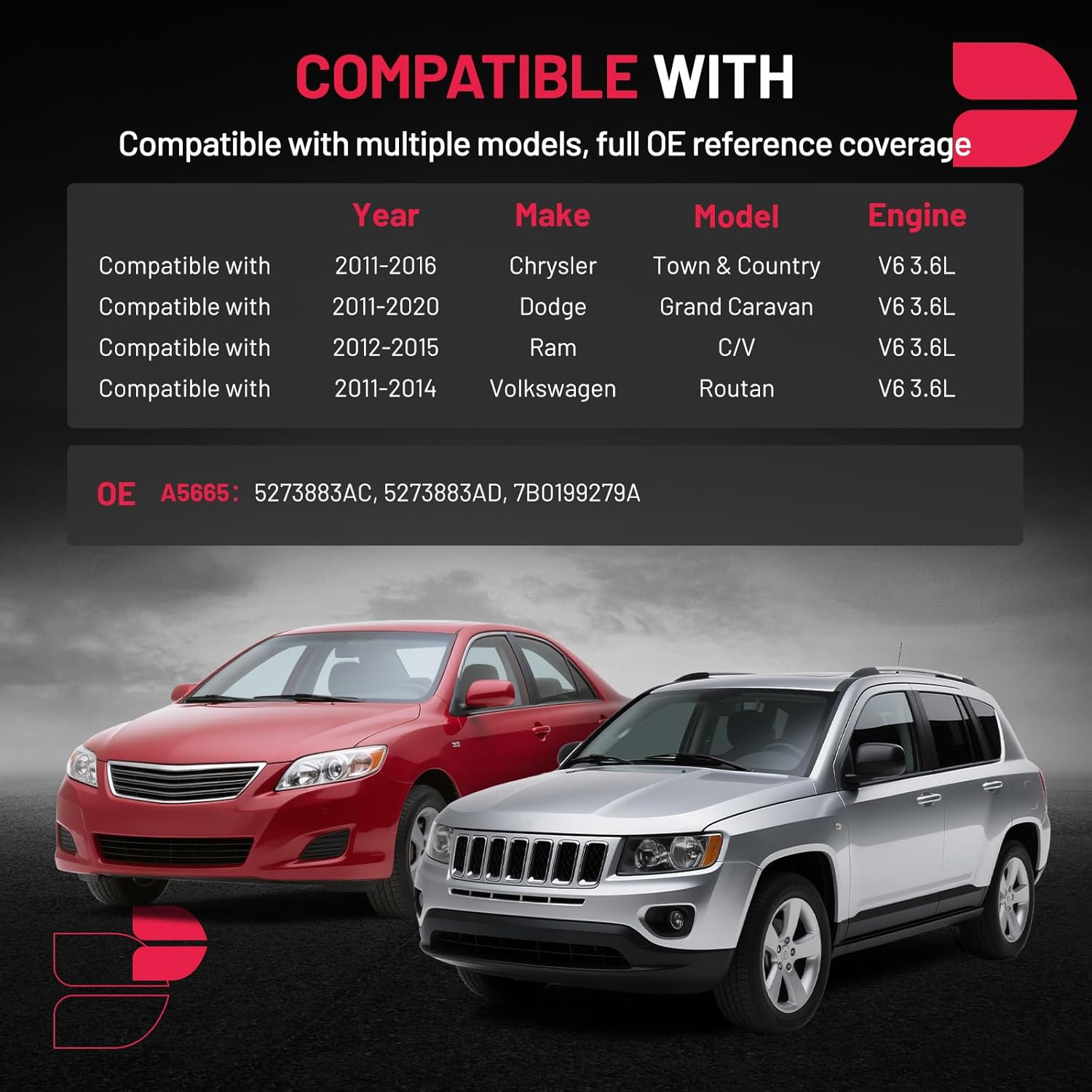 【Compatible with】Compatible with Chrysler Town & Country 2011-2016 3.6L V6, Compatible with Dodge Grand Caravan 2011-2020 3.6L V6, Compatible with Ram C/V 2012-2015 3.6L V6, Compatible with Volkswagen Routan 2011-2014 3.6L V6