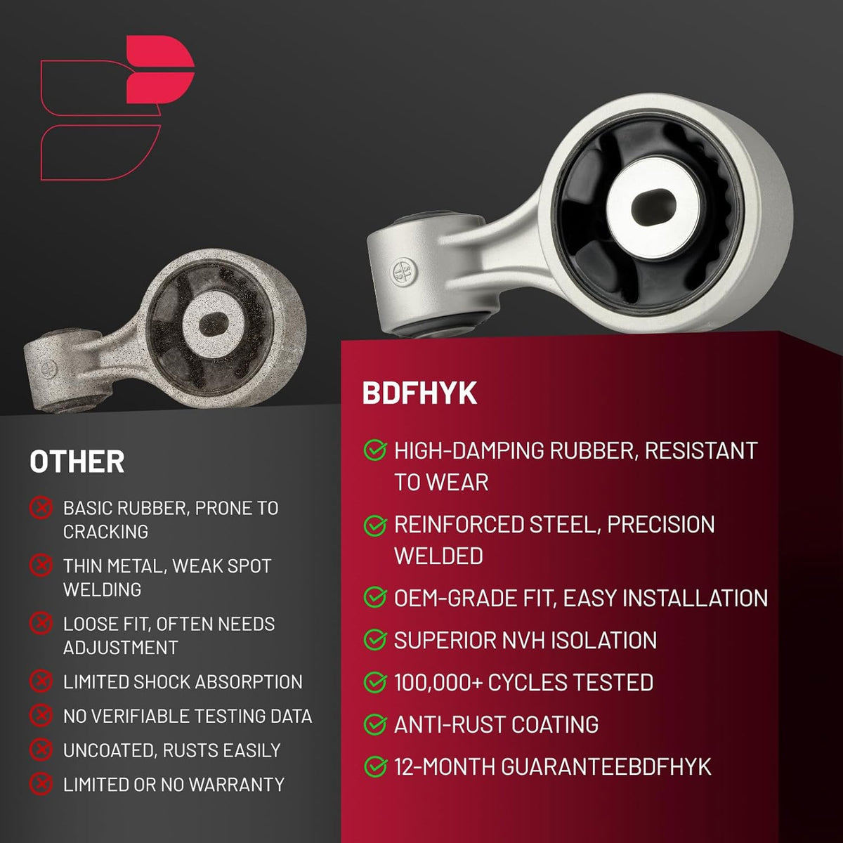 【Customer Service】BDFHYK Engine Motor Mount meets or exceeds OE standards.With a 365-day brand maintenance and 24-hour mail service,it delivers stable operation