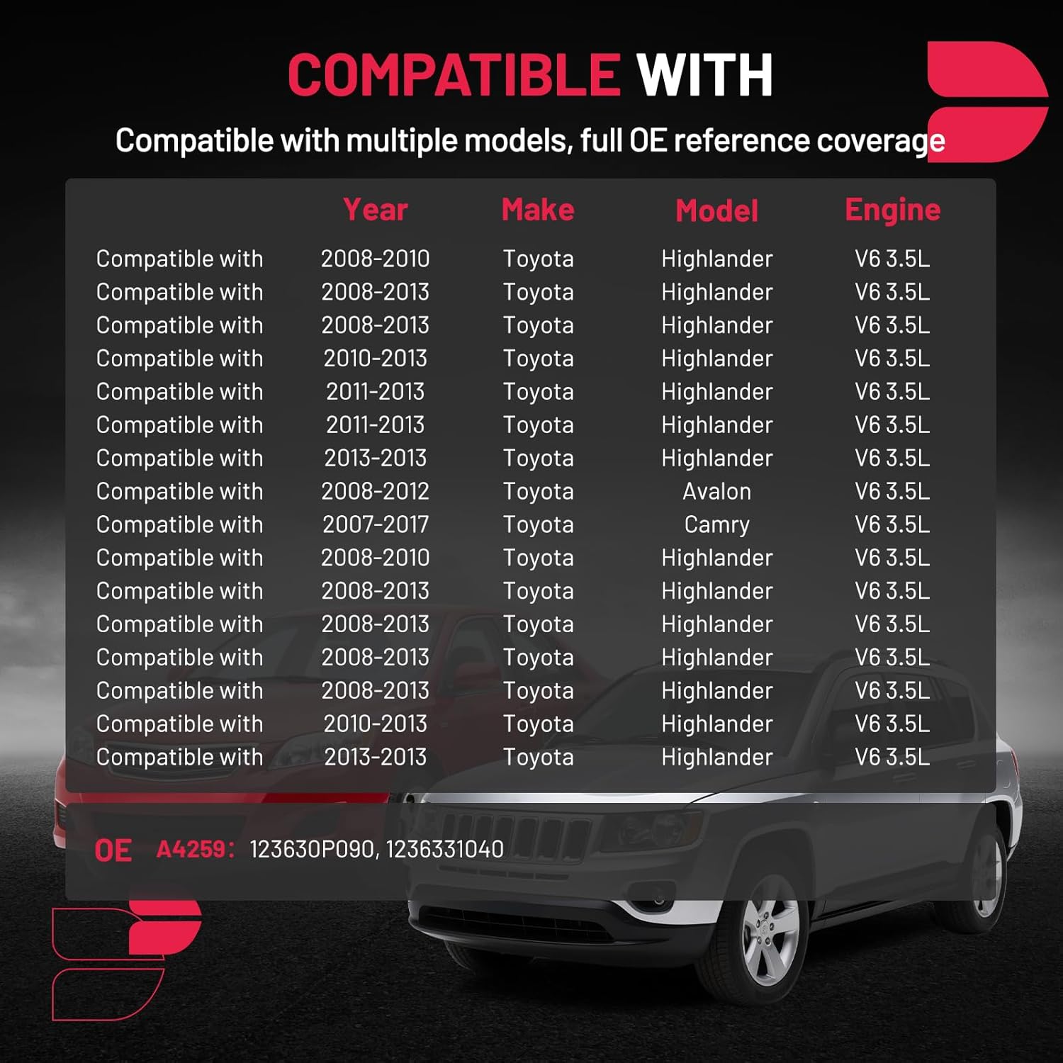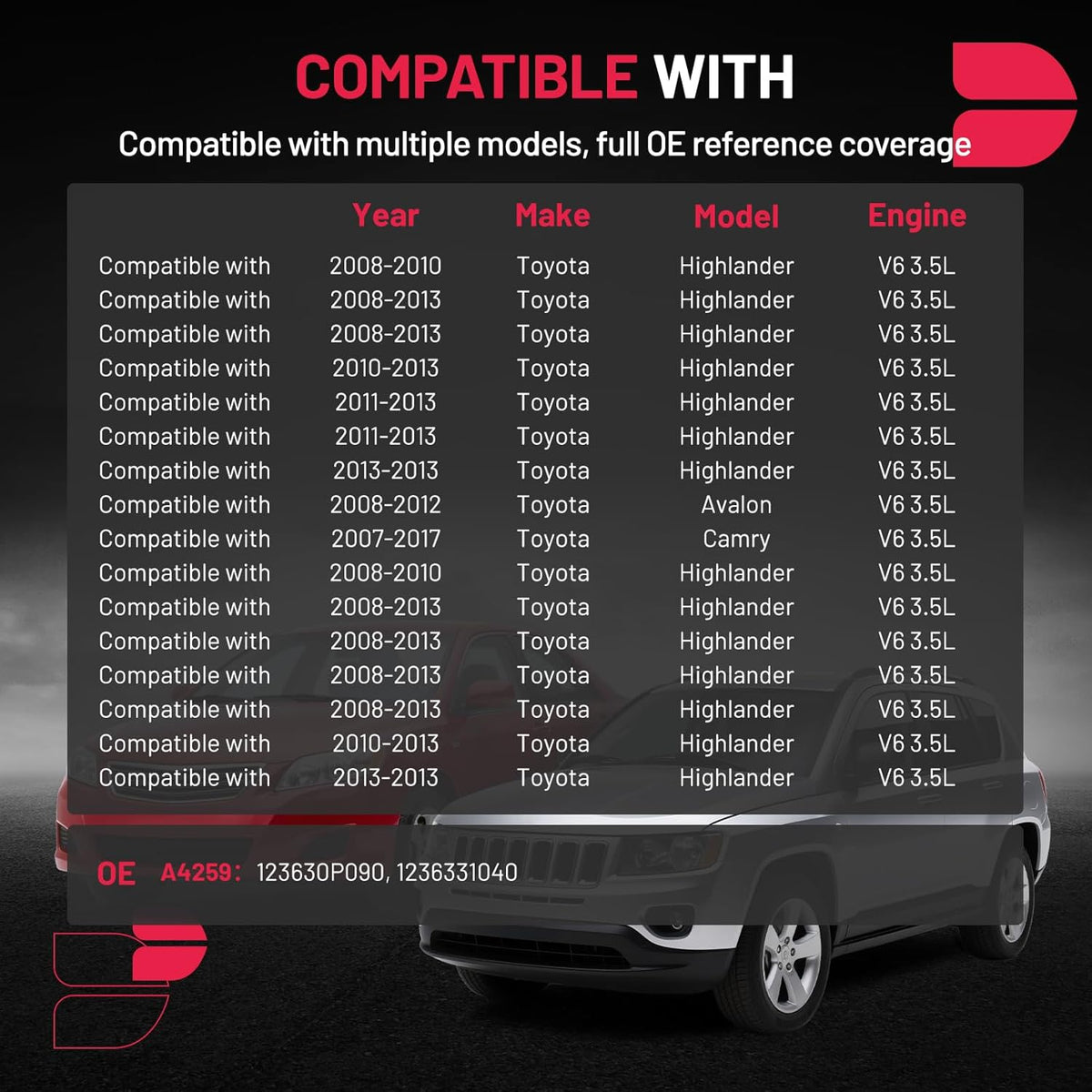 【Compatible with】Compatible with Toyota Highlander 2008-2013 3.5L V6, Compatible with Toyota Avalon 2008-2012 3.5L V6, Compatible with Toyota Camry 2007-2017 3.5L V6