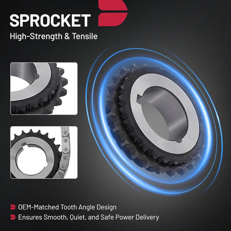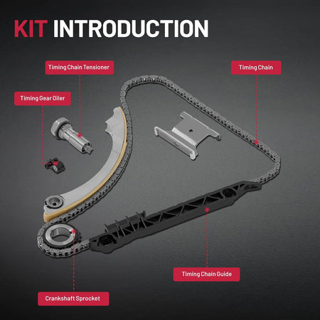 [Full Timing Chain Kit] This kit uses a reinforced, heat-treated chain for high strength and heat resistance. Each component is tested to OEM standards for precise camshaft and crankshaft timing. The complete set saves time by replacing the need for separate parts and allows easier installation. Designed to support smooth acceleration, stable power delivery, and longer engine service life while helping reduce the risk of costly valve or piston issues