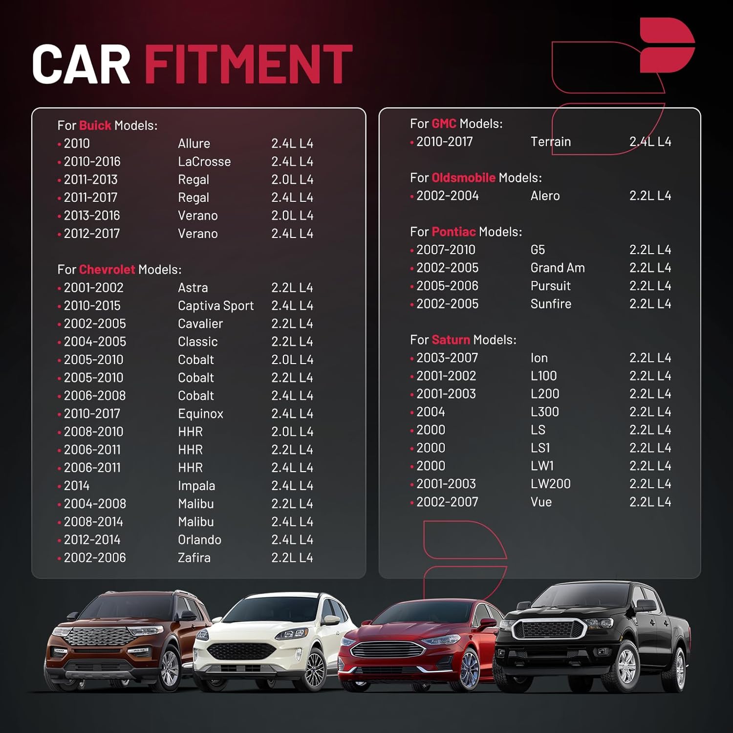 [Compatible Vehicles]: This complete timing chain kit for 2.0/2.2/2.4L L4 Compatible with Chevy 2002-2017 Astra, Captiva Sport, Cavalier, Classic, Cobalt, Equinox, HHR, Impala, Malibu, Orlando, Zafira; Compatible with GMC 2010-2017 Terrain; Compatible with Buick 2010-2017 Allure, LaCrosse, Regal, Verano; Compatible with Pontiac 2002-2010 G5, Grand Am, Pursuit, Sunfire; Compatible with Saturn 2000-2007 Ion, L100, L200, L300, LS, LS1, LW1, LW200, Vue; Compatible with Oldsmobile 2002-2004 Alero