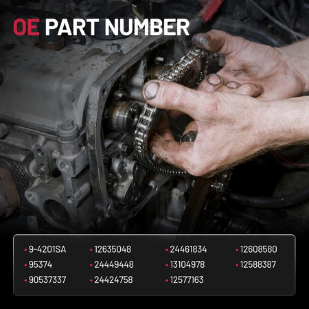 [Exact OE Fit]: This engine timing chain set replacement corresponds to the following OE part numbers: 9-4201SA, 12635048, 24461834, 12608580, 95374, 24449448, 13104978, 12588387, 90537337, 24424758, 12577163