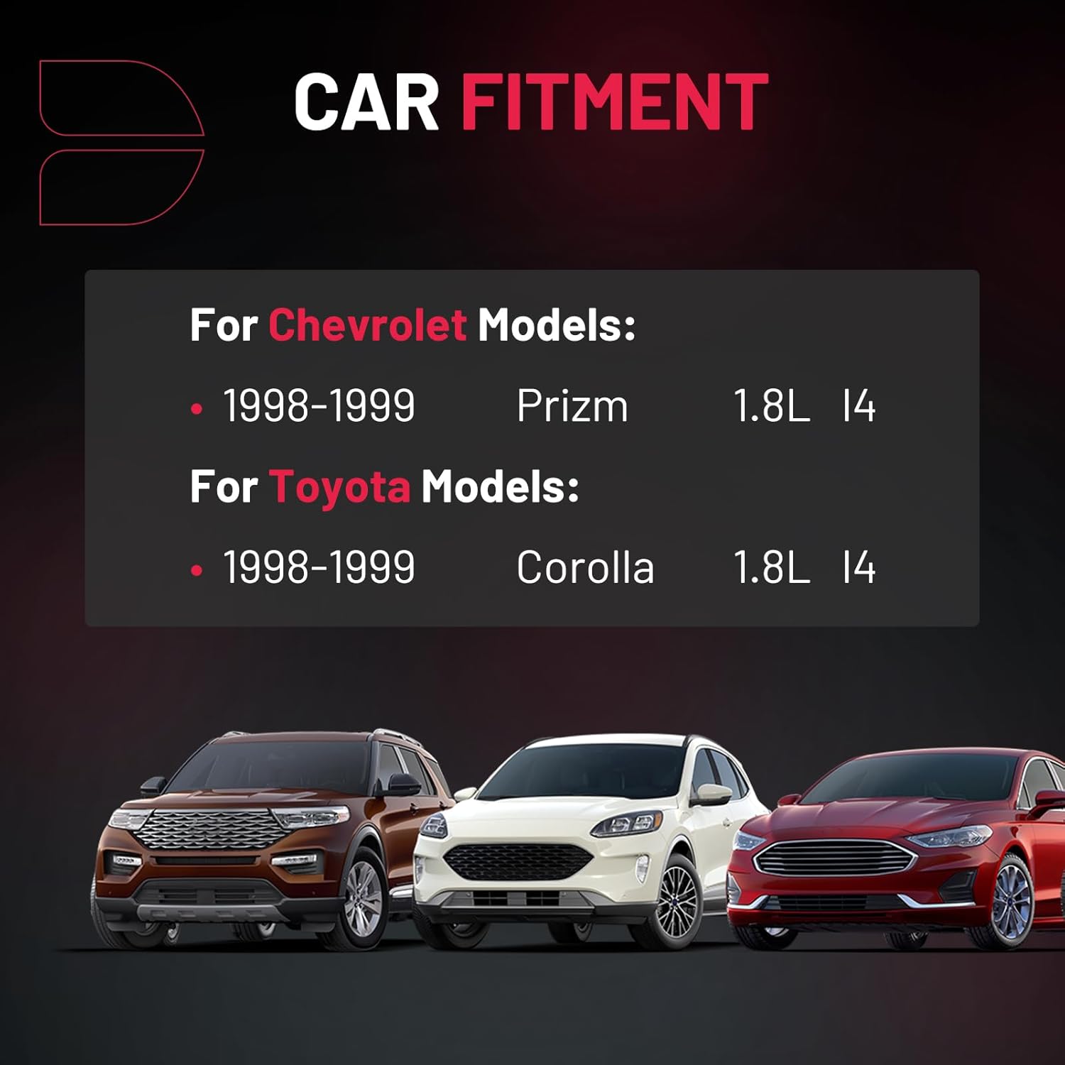 【Basic Info:】Ignition Coil UF246 & Spark Plugs 7090 Compatible with Chevy 1998-1999 Prizm 1.8L l4; Compatible with Toyota 1998-1999 Corolla 1.8L l4. Please check detail fitting info from pics or detail page. Please choose suitable coil pack and plugs with confidence.