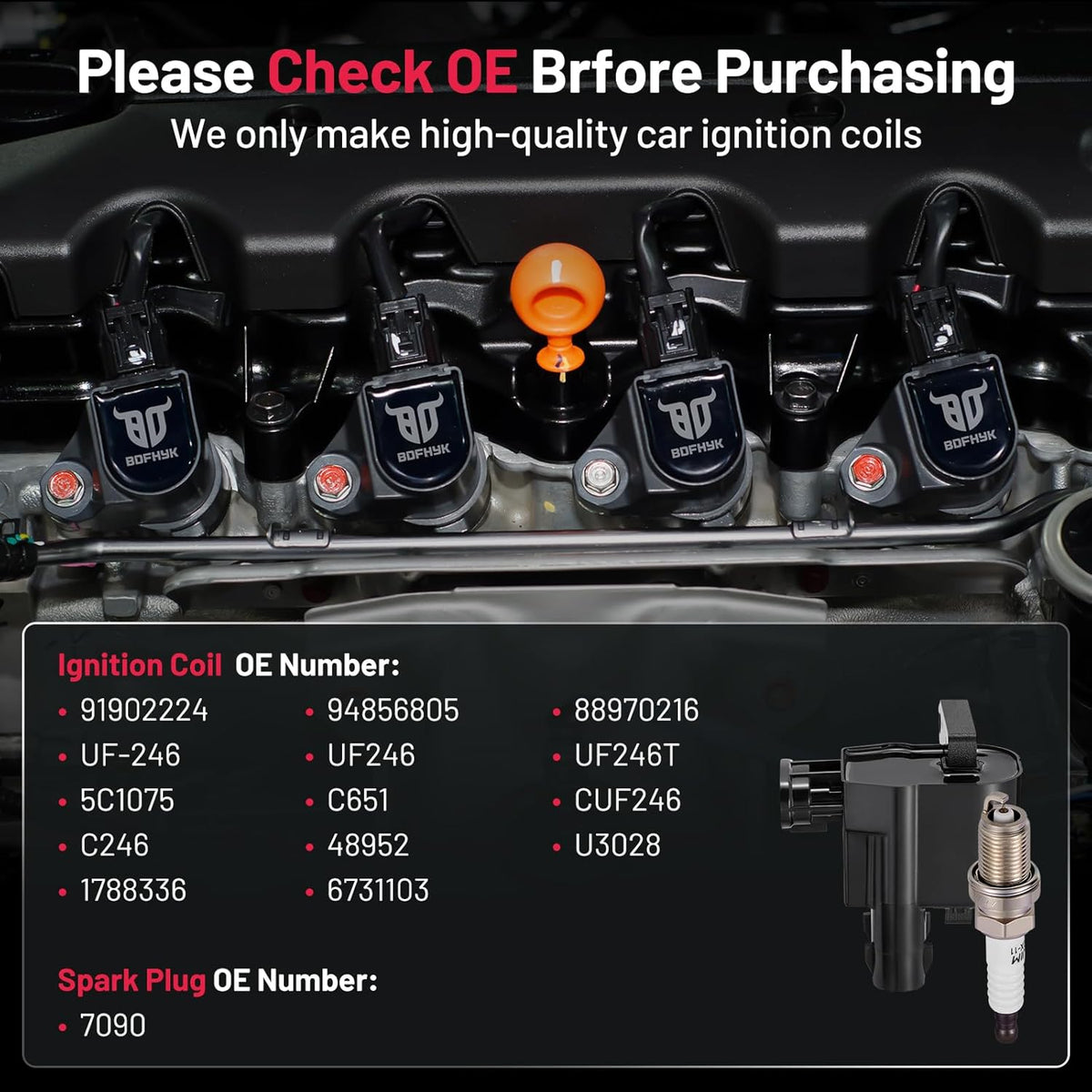 【Features of ignition coil:】High quality ignition coils are made of silicon steel material, Japan-imported rubber, and Germany-imported varnished wire, which makes our coils have a long using life and better quality. ‼Please check OE:91902224 94856805 88970216 UF-246 UF246 UF246T 5C1075 C651 CUF246 C246 48952 U3028 1788336 6731103.