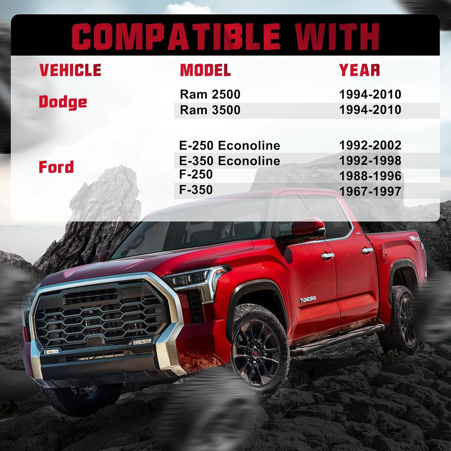 Basic Info: Wheel Spacers Compatible with Dodge Ram 2500 1994-2010, Ram 3500 1994-2010, Compatible with Ford E-250 Econoline 1992-2002, E-350 Econoline 1992-1998, F-250 1988-1996,F-350 1967-1997. Please check the detail fitting info from the pics or detail page. 12 months warranty and lifetime after-sales service are furnished after bought our products. Please choose a suitable one with confidence