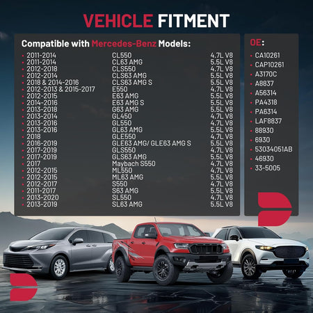 【COMPATIBILITY】Compatible with Mercedes-Benz Models: 2011-2014 CL550, 2011-2014 CL63 AMG, 2012-2018 CLS550, 2012-2014 CLS63 AMG, 2014-2016 & 2018 CLS63 AMG S, 2012-2013&2015-2017 E550, 2012-2015 E63 AMG, 2014-2016 E63 AMG S, 2013-2018 G63 AMG, 2013-2014 GL450, 2013-2016 GL550, 2013-2016 GL63 AMG, 2018 GLE550, 2016-2019 GLE63 AMG, 2016-2019 GLE63 AMG S, 2017-2019 GLS550, 2017-2019 GLS63 AMG, 17 Maybach S550, 12-15 ML550, 12-15 ML63 AMG, 2012-2017 S550, 11-17 S63 AMG, 13-20 SL550, 13-19 SL63 AMG