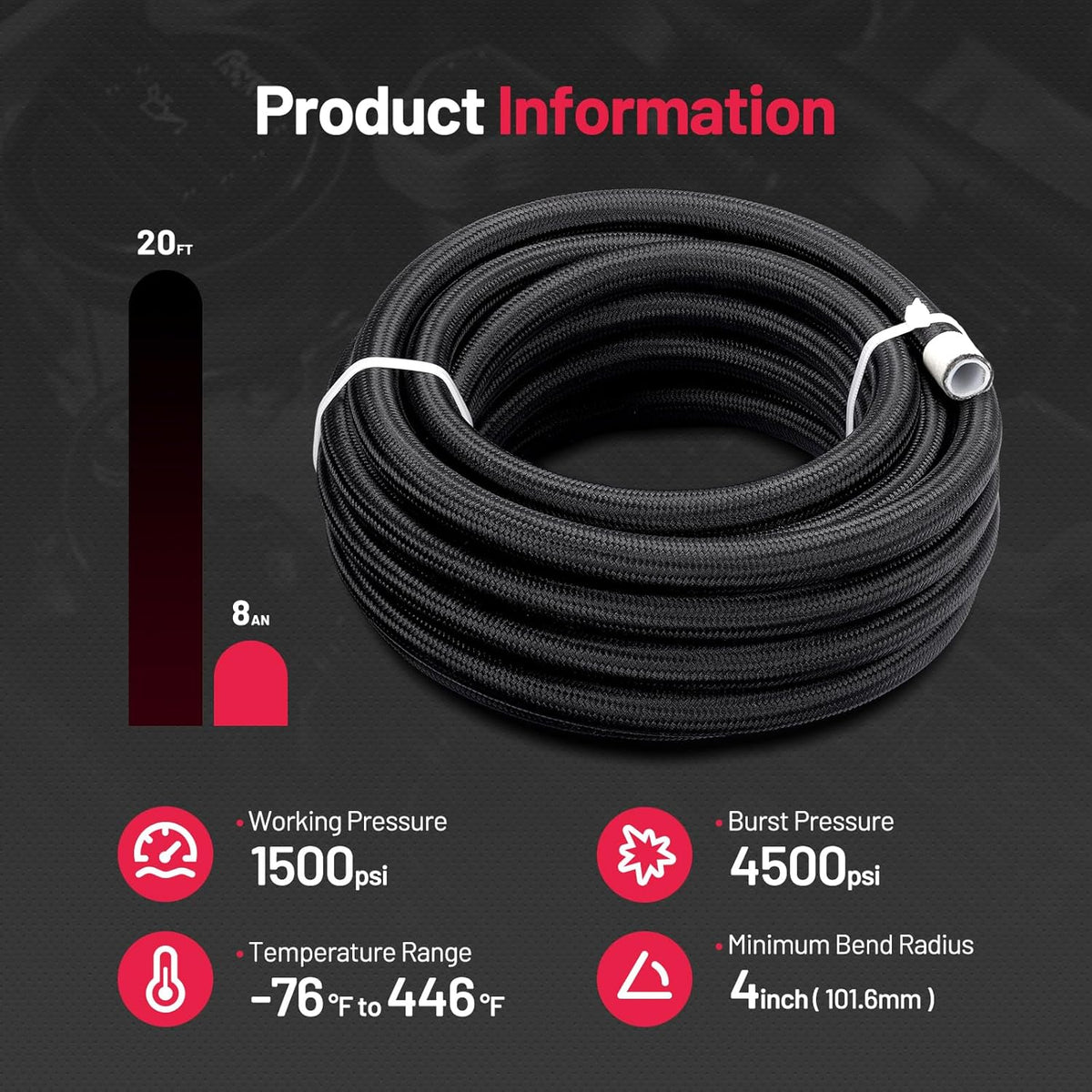 Application: This PTFE nylon braided fuel line kit is compatible with most automotive fuels, lubricants, and coolants