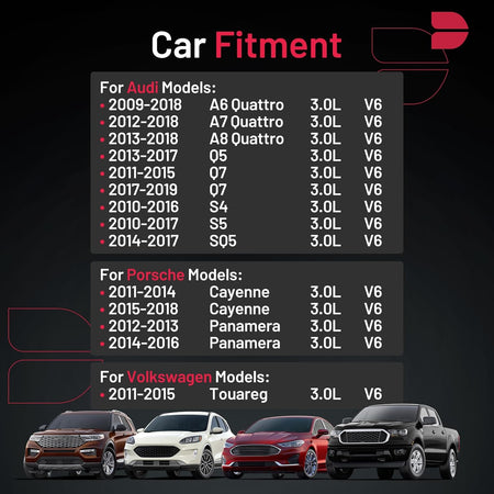 【Compatibility Information】:Spark Plug 2668 Compatible with Audi 2009-2018 A6 Quattro, 2012-2018 A7 Quattro, 2013-2018 A8 Quattro, 2013-2017 Q5, 2011-2015 Q7, 2017-2019 Q7, 2010-2016 S4, 2010-2017 S5, 2014-2017 SQ5; Compatible with Porsche 2011-2018 Cayenne, 2012-2016 Panamera; Compatible with Volkswagen 2011-2015 Touareg.Please see images or details page for complete Compatibility information