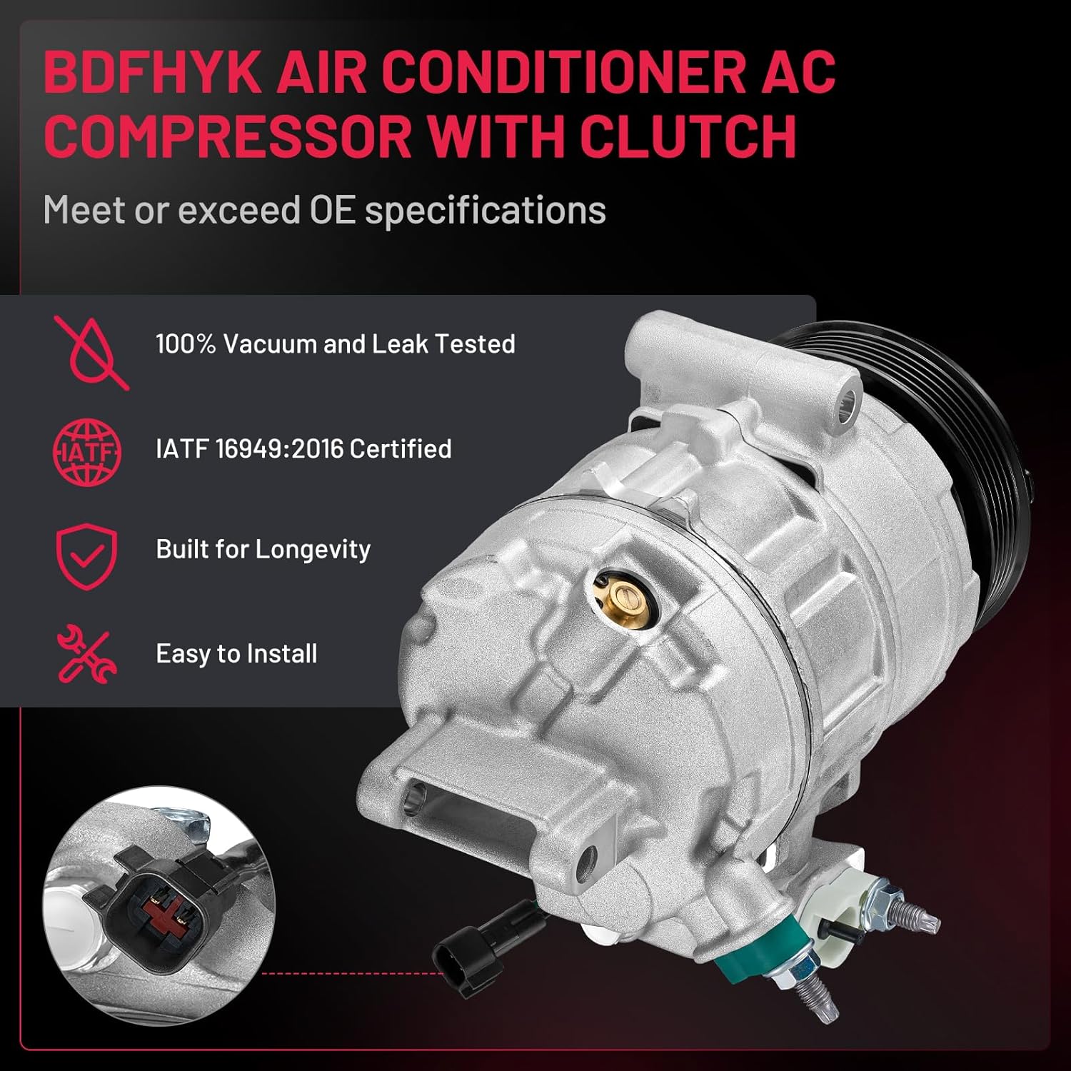 Superior Quality - The A/C Compressors for car are built in a IATF 16949:2016 Certified facility, meet or exceed OE specifications. Mechanically tested prior to leaving the factory ensures optimal performance and enhanced durability. Great life cycles.