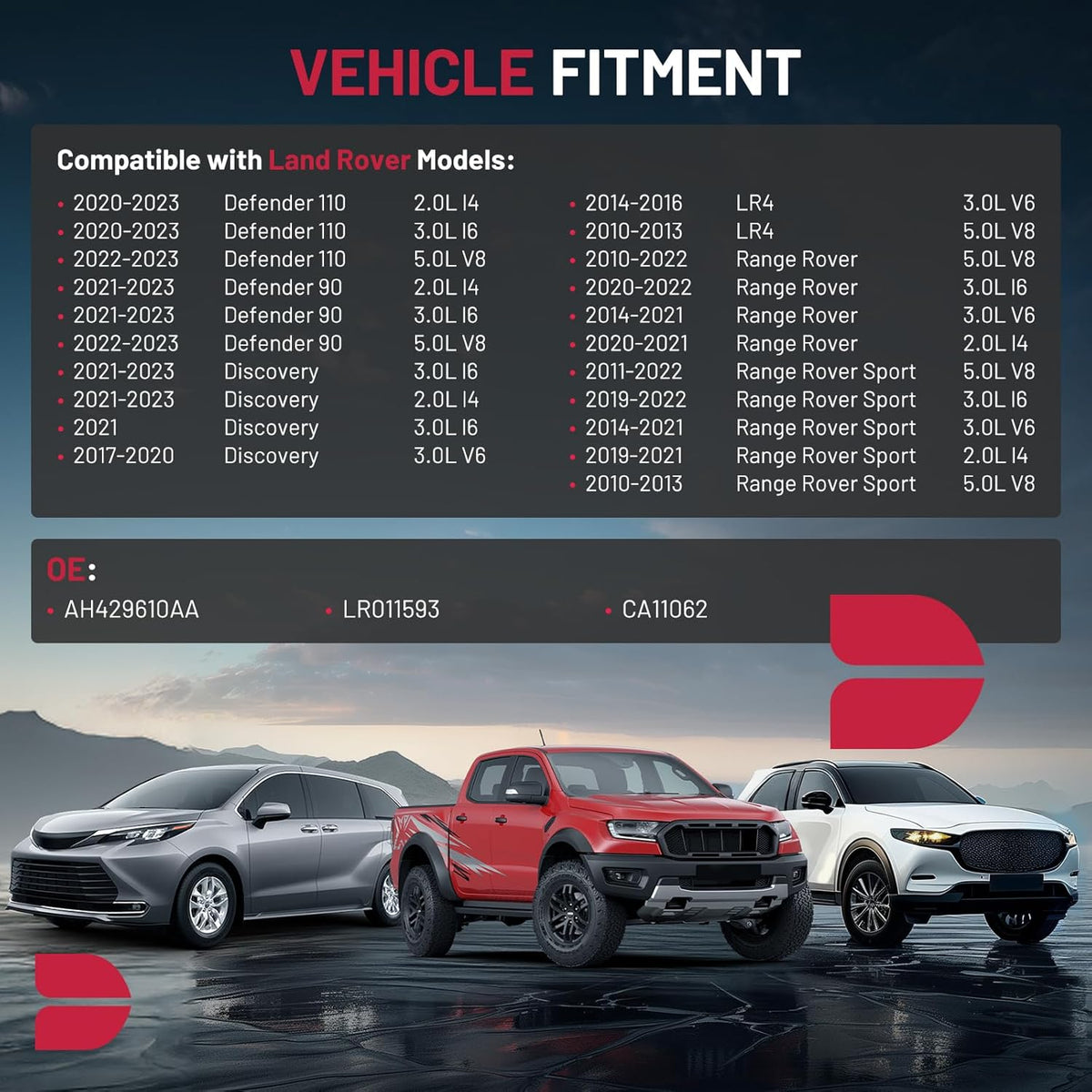 【COMPATIBILITY】Compatible with Land Rover Models: 2020-2023 Defender 110 2.0L l4, 2020-2023 Defender 110 3.0L l6, 2022-2023 Defender 110 5.0L V8, 2021-2023 Defender 90 2.0L l4, 2021-2023 Defender 90 3.0L l6, 2022-2023 Defender 90 5.0L V8, 2017-2023 Discovery, 2010-2016 LR4, 2010-2022 Range Rover, 2010-2022 Range Rover Sport