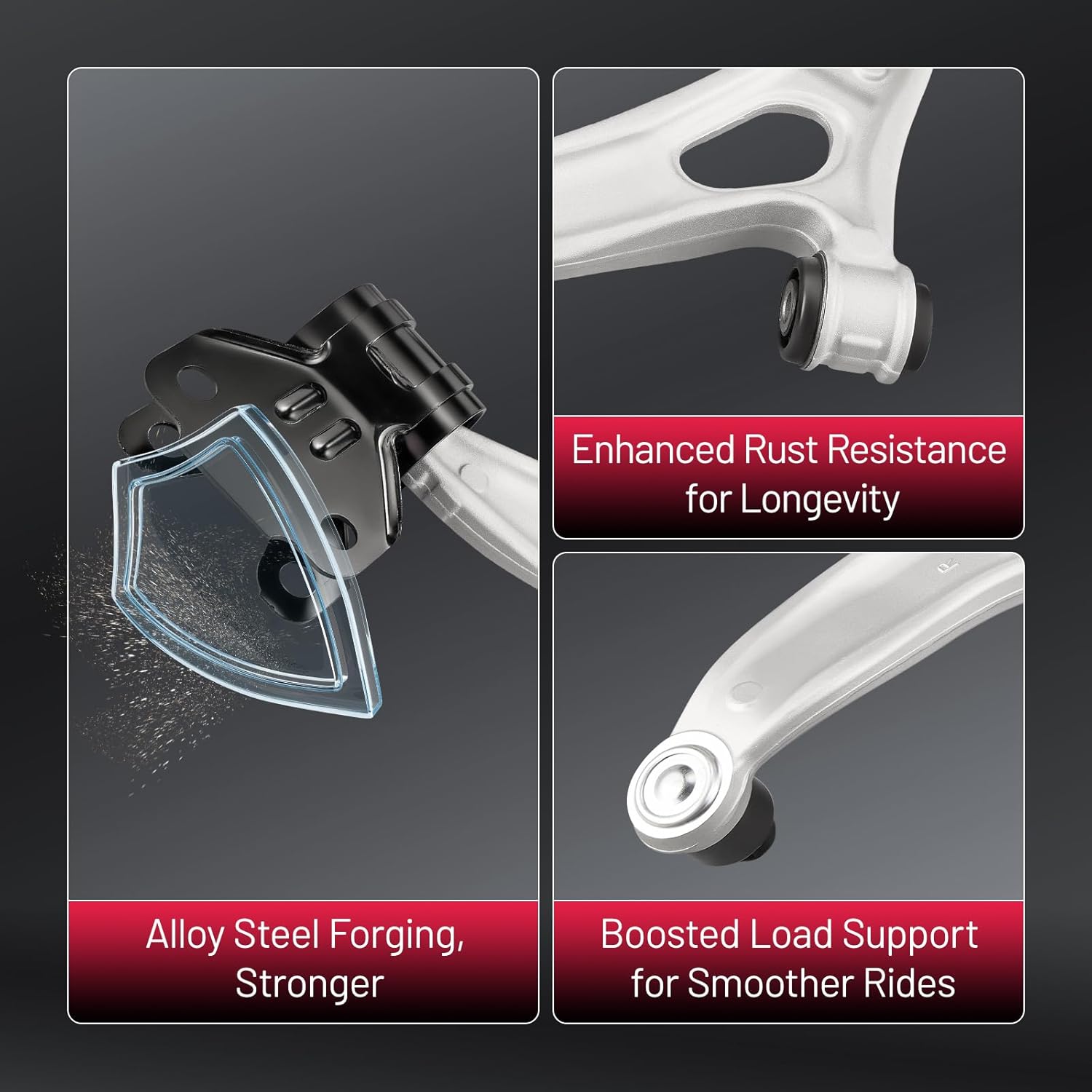 【Control Arm Features】 The control arm improves stability, handling, and driving comfort, with a protective finish that helps extend service life. Made from forged alloy steel, it delivers reliable performance, reduces noise, and ensures accurate fitment for safe and consistent driving
