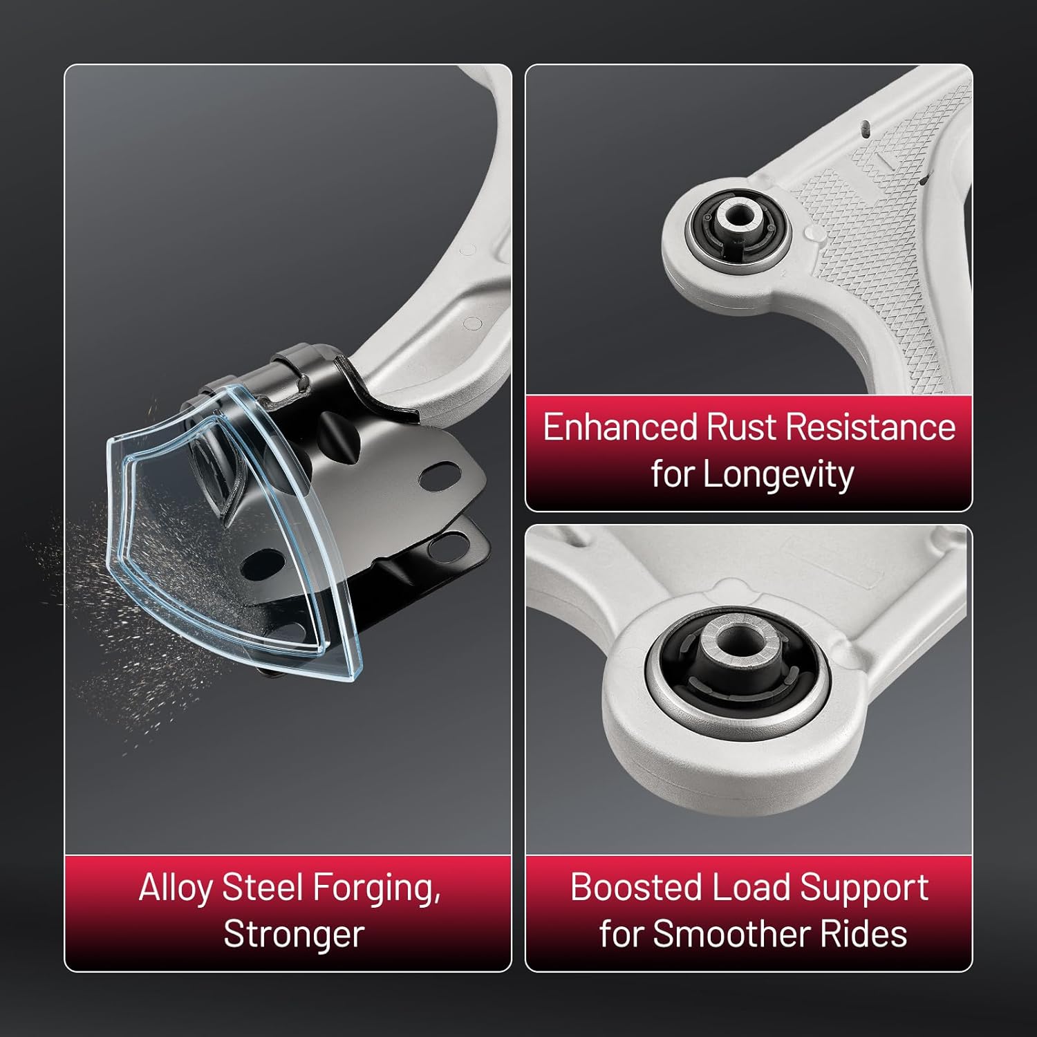【Control Arm Features】 The control arm improves stability, handling, and driving comfort, with a protective finish that helps extend service life. Made from forged alloy steel, it delivers reliable performance, reduces noise, and ensures accurate fitment for safe and consistent driving