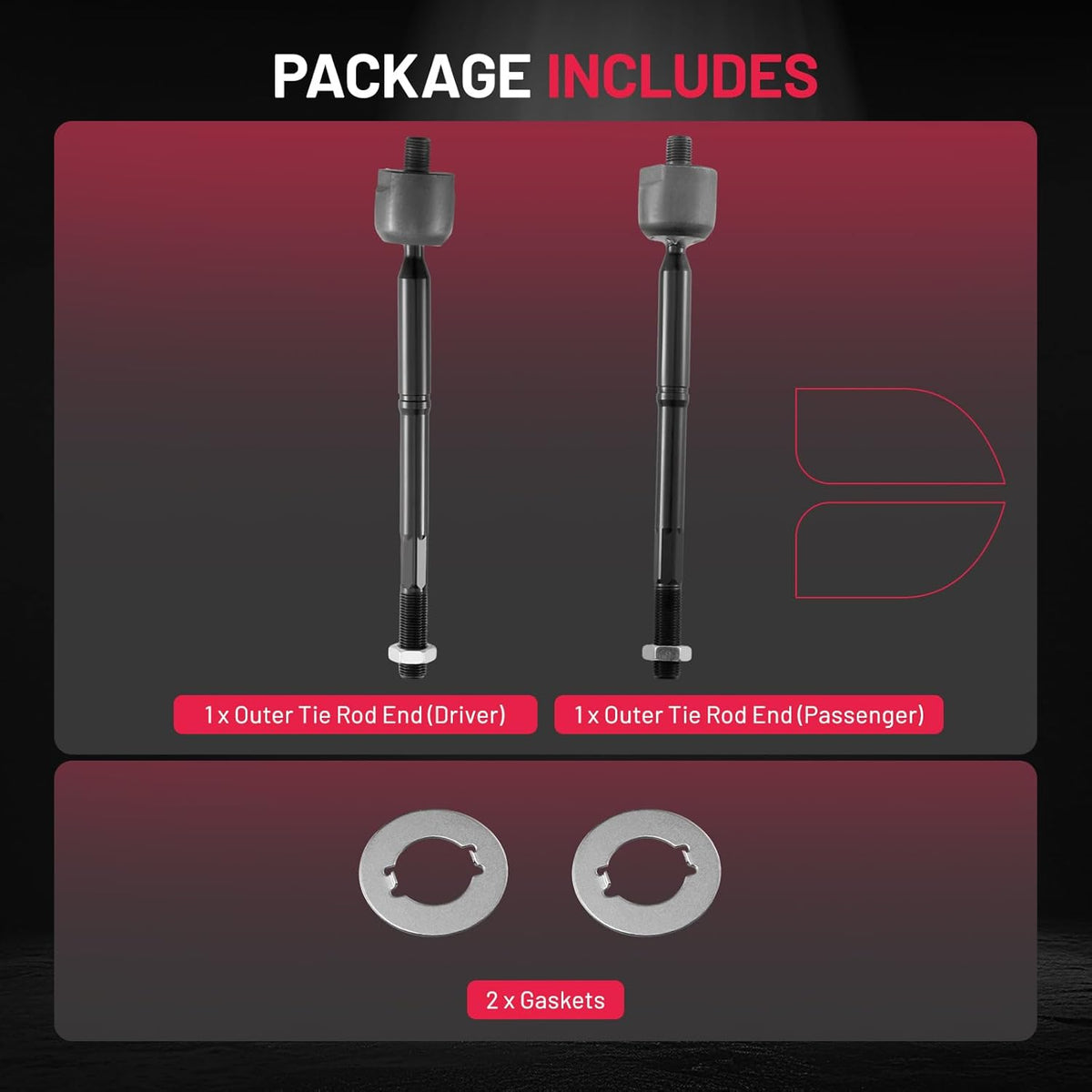 Tie Rod Ends Kit Include:1 x EV800244 Front Inner Tie Rod End Driver and Passenger Side, 2 x Gaskets.
