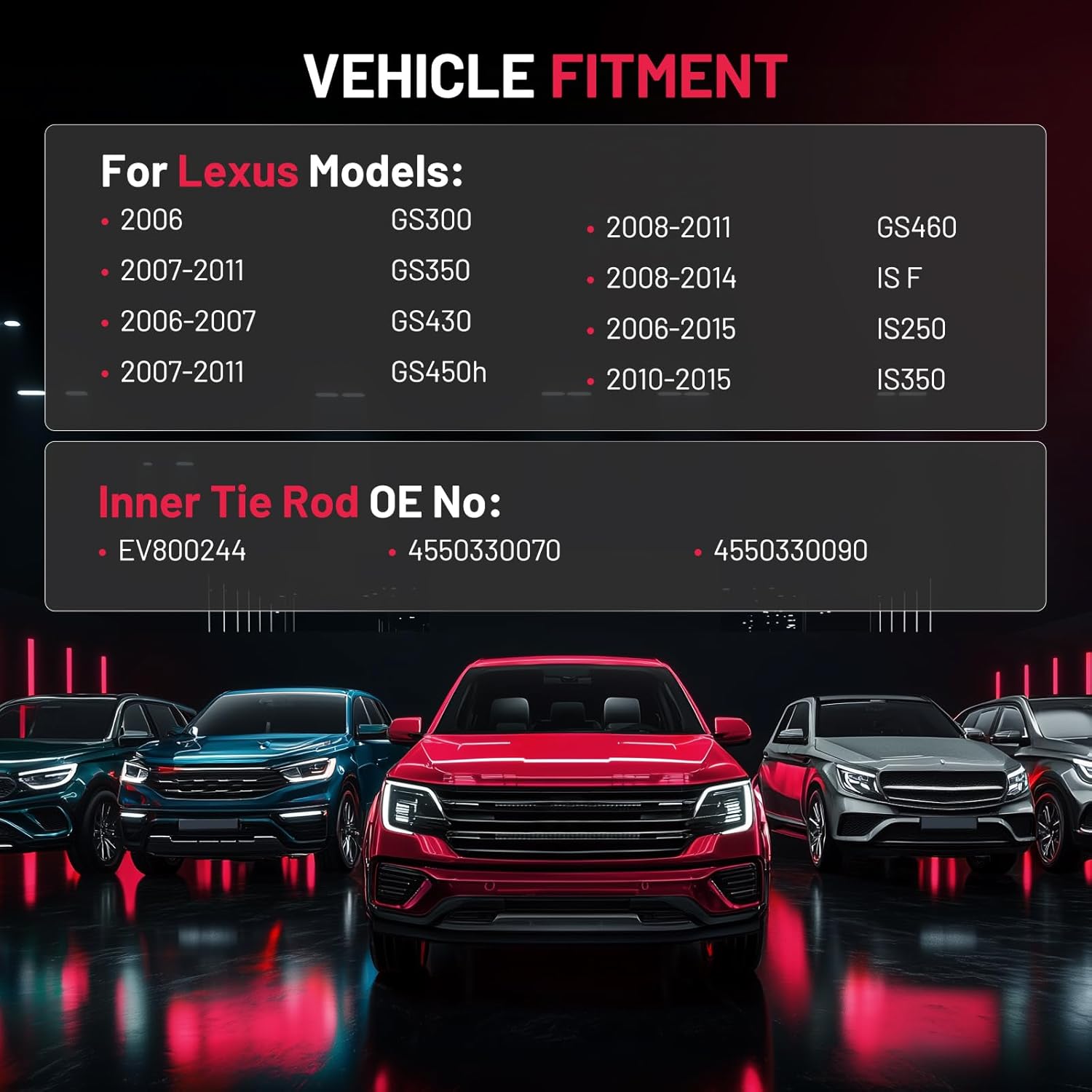 Compatible with Lexus 2006 GS300, 2007-2011 GS350, 2006-2007 GS430, 2007-2011 GS450h, 2008-2011 GS460, 2008-2014 IS F, 2010-2015 IS250, 2010-2015 IS350.More information can be found in the pictures or on the details page.Please confirm compatibility based on your vehicle's year, brand, model, and the OE number of the replacement parts.