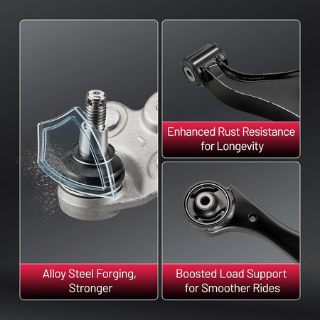 【Control Arm Features】 The control arm improves stability, handling, and driving comfort, with a protective finish that helps extend service life. Made from forged alloy steel, it delivers reliable performance, reduces noise, and ensures accurate fitment for safe and consistent driving