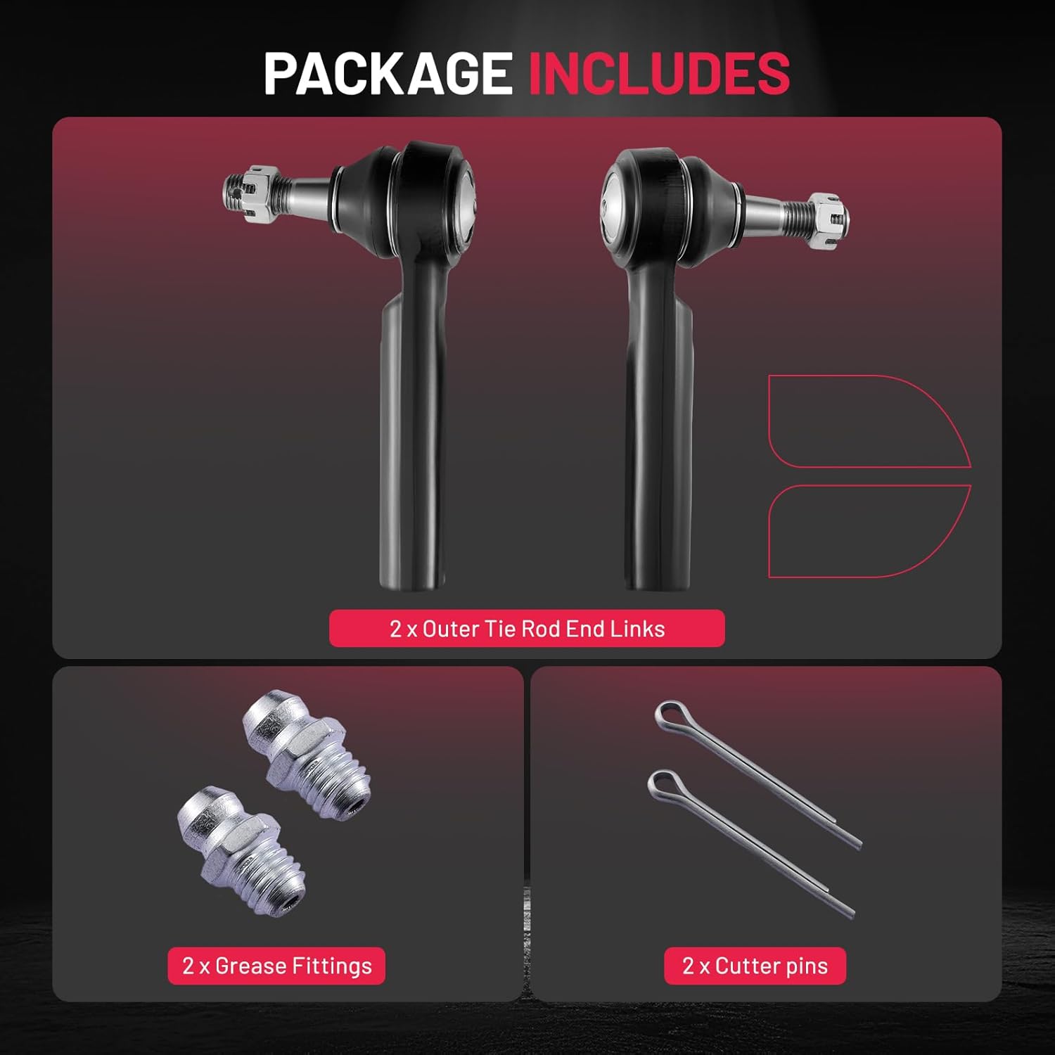 Tie Rod Ends Kit Include:2 x ES800223 Front Outer Tie Rod End Links, 2 x Grease Fittings, 2 x Cutter pins.