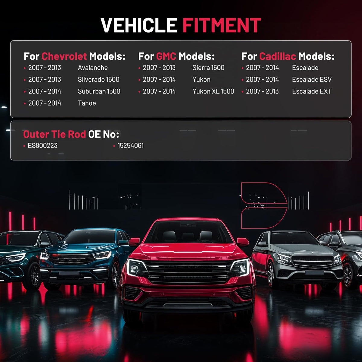 BDFHYK 2pcs Front Outer Tie Rod Ends Kit Compatible with Cadillac 2007-2014 Escalade,Compatible with Chevy 2007-2013 Tahoe Silverado Suburban 1500,Sierra 1500 Yukon Replacement for ES800223 15254061