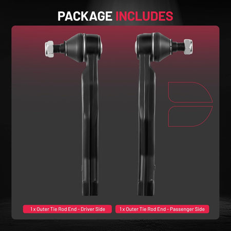 Tie Rod Ends Kit Include:1 x ES800033 Outer Tie Rod End - Driver Side, 1 x ES800034 Outer Tie Rod End - Passenger Side.