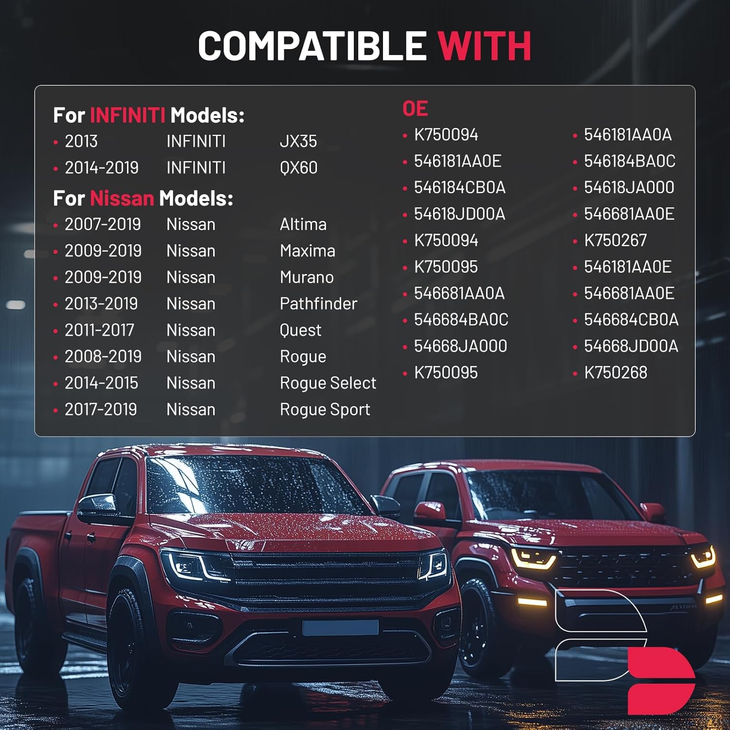 【Compatible Vehicles】Compatible with INFINITI JX35 2013, Compatible with INFINITI QX60 2014-2019, Compatible with Nissan Altima 2007-2019, Compatible with Nissan Maxima 2009-2019, Compatible with Nissan Murano 2009-2019, Compatible with Nissan Pathfinder 2013-2019, Compatible with Nissan Quest 2011-2017, Compatible with Nissan Rogue 2008-2019, Compatible with Nissan Rogue Select 2014-2015, Compatible with Nissan Rogue Sport 2017-2019