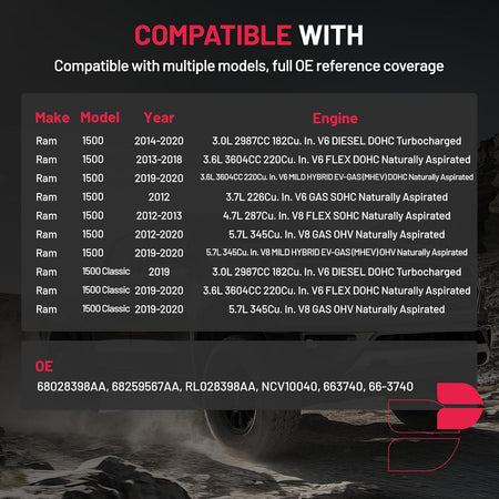 【Compatible Vehicles】 Compatible with Ram 1500 2012-2020; Compatible with Ram 1500 Classic 2019-2020