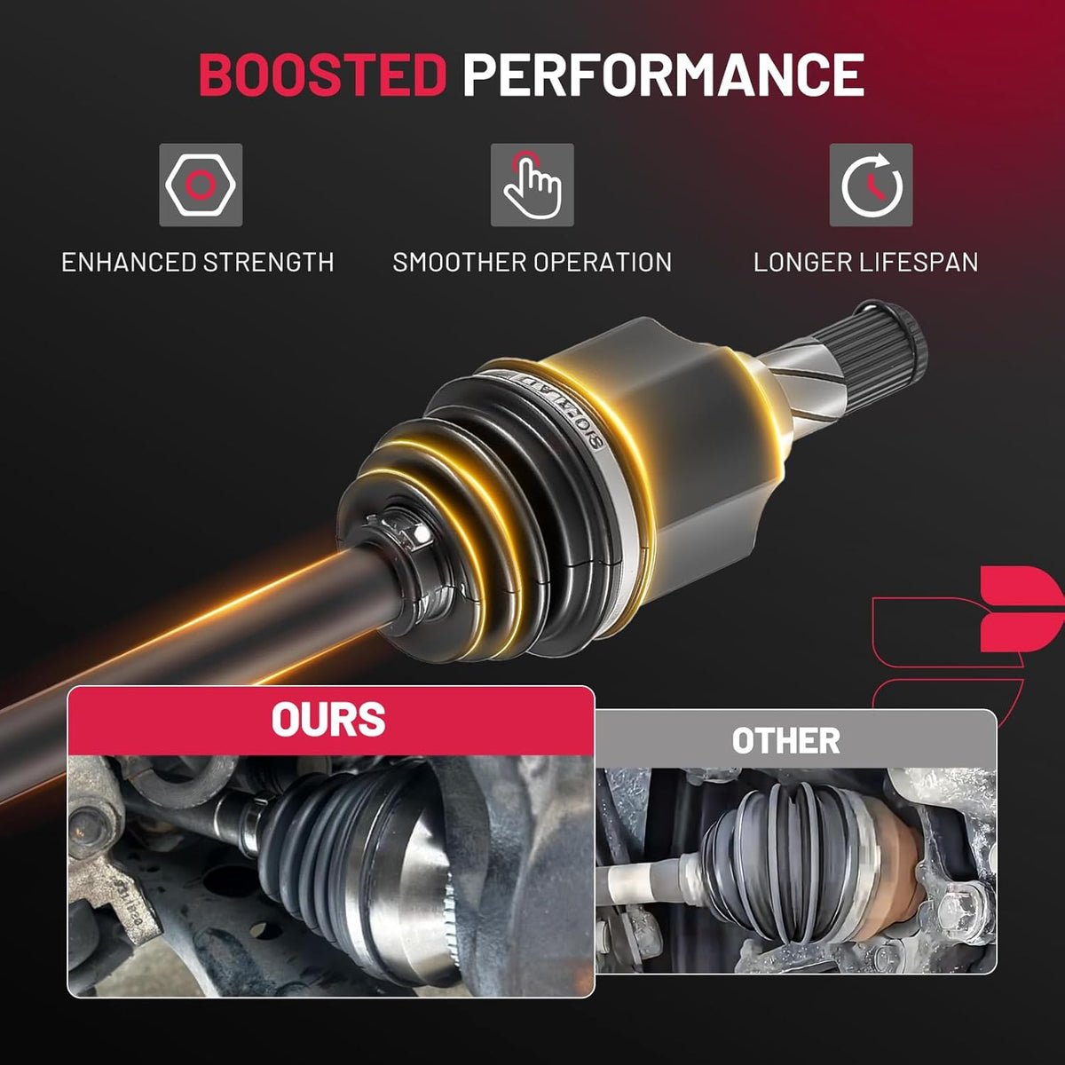 【Product Advantages】 Engineered for peak performance, our premium neoprene boots shield your CV joints from dirt and debris, while moly grease ensures smooth operation even under extreme temperatures. Secured with heavy-duty stainless-steel clamps, this durable, maintenance-free assembly delivers long-lasting reliability you can trust.
