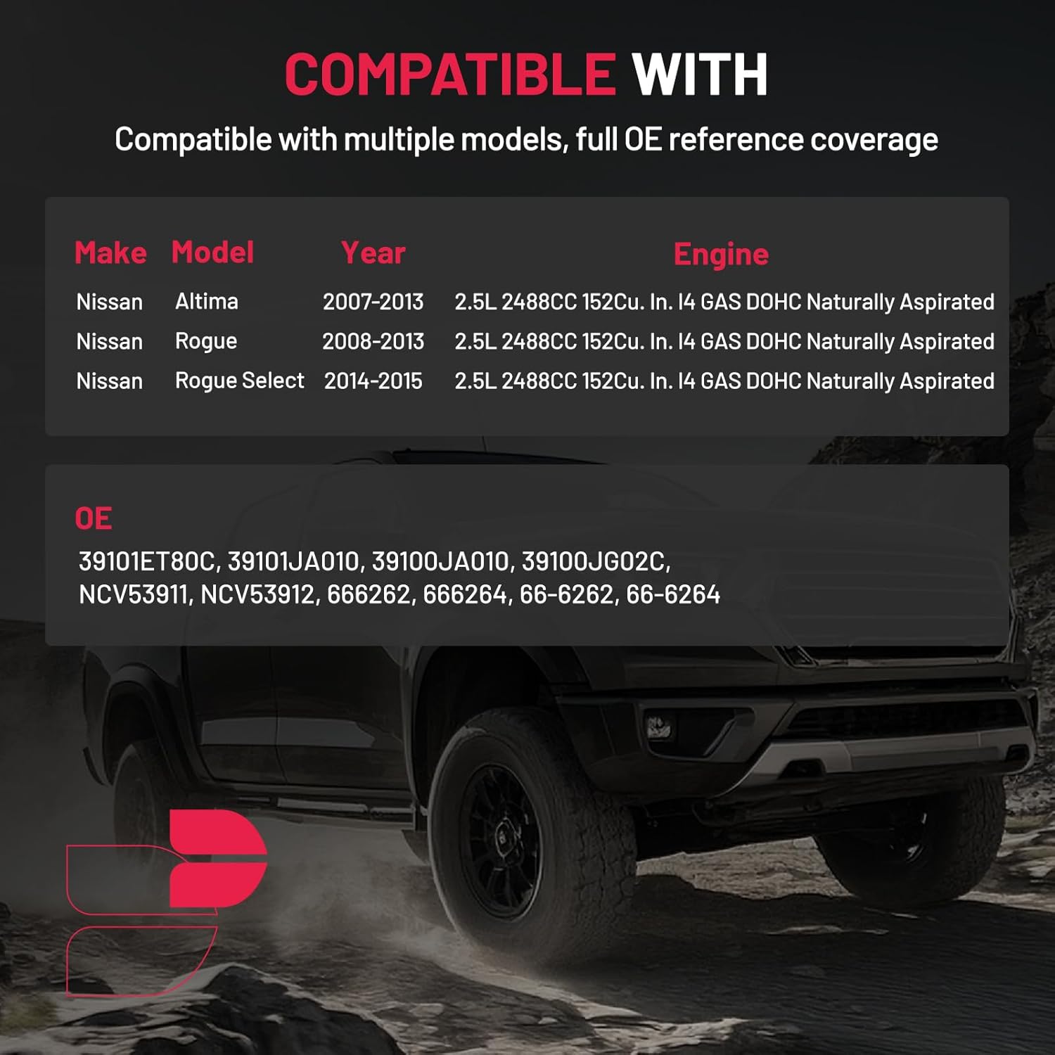 【Compatible Vehicles】 Compatible with Nissan Altima 2007-2013; Compatible with Nissan Rogue 2008-2013; Compatible with Nissan Rogue Select 2014-2015