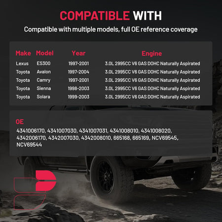 【Compatible Vehicles】 Compatible with Lexus ES300 1997-2001, Compatible with Toyota Avalon 1997-2004, Compatible with Toyota Camry 1997-2001, Compatible with Toyota Sienna 1998-2003, Compatible with Toyota Solara 1999-2003