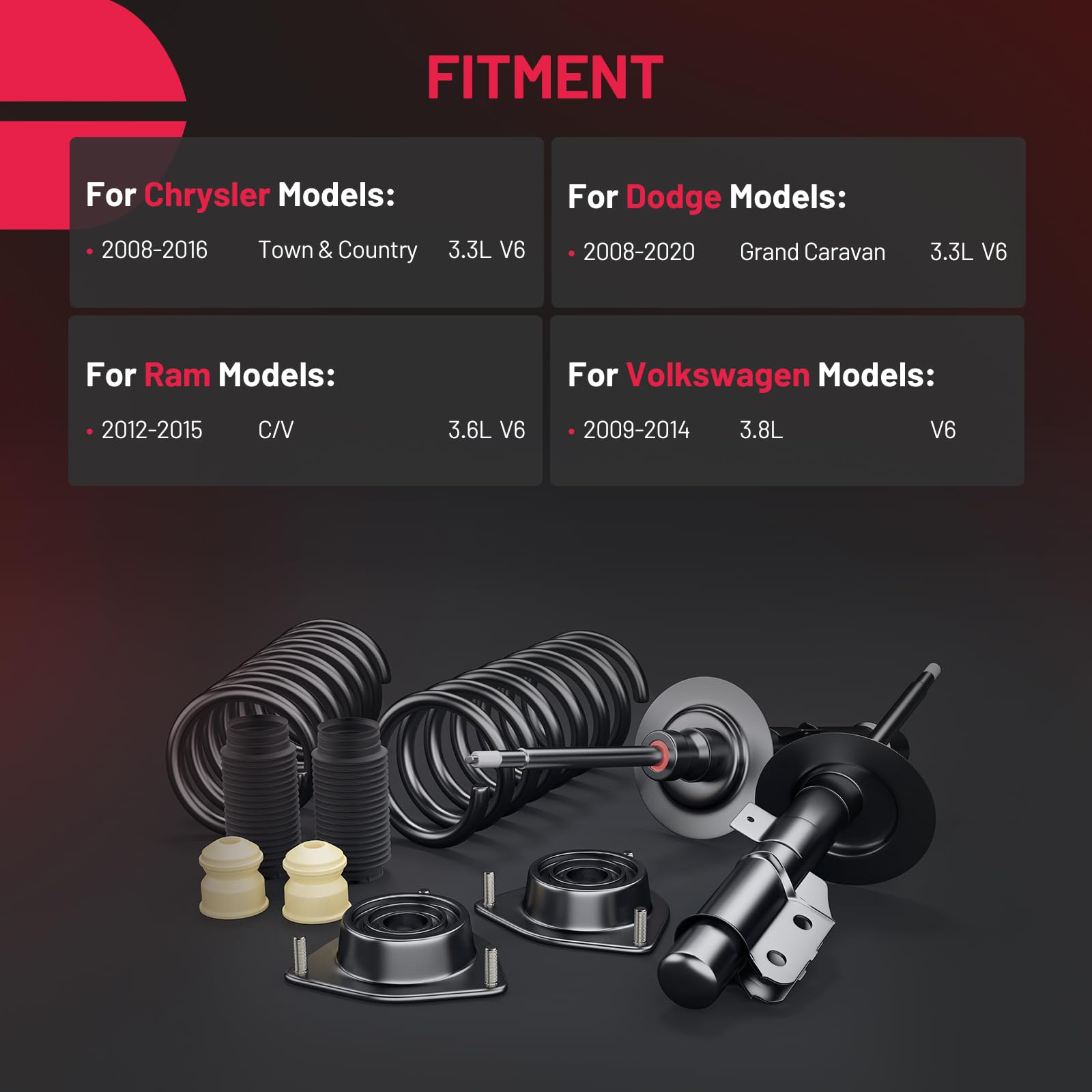 - 【Fitment information】:Shock Absorbers compatible with 2008-2016 Chrysler Town & Country; compatible with 2008-2020 Dodge Grand Caravan; compatible with 2012-2015 Ram C/V; compatible with 2009-2014 VW Routan.
