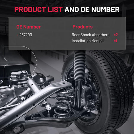 - 【Shocks OE number】:Rear shock absorber OE:437290.Please confirm the compatibility according to the year/make/model of your vehicle and the OE number of the replaceable part.