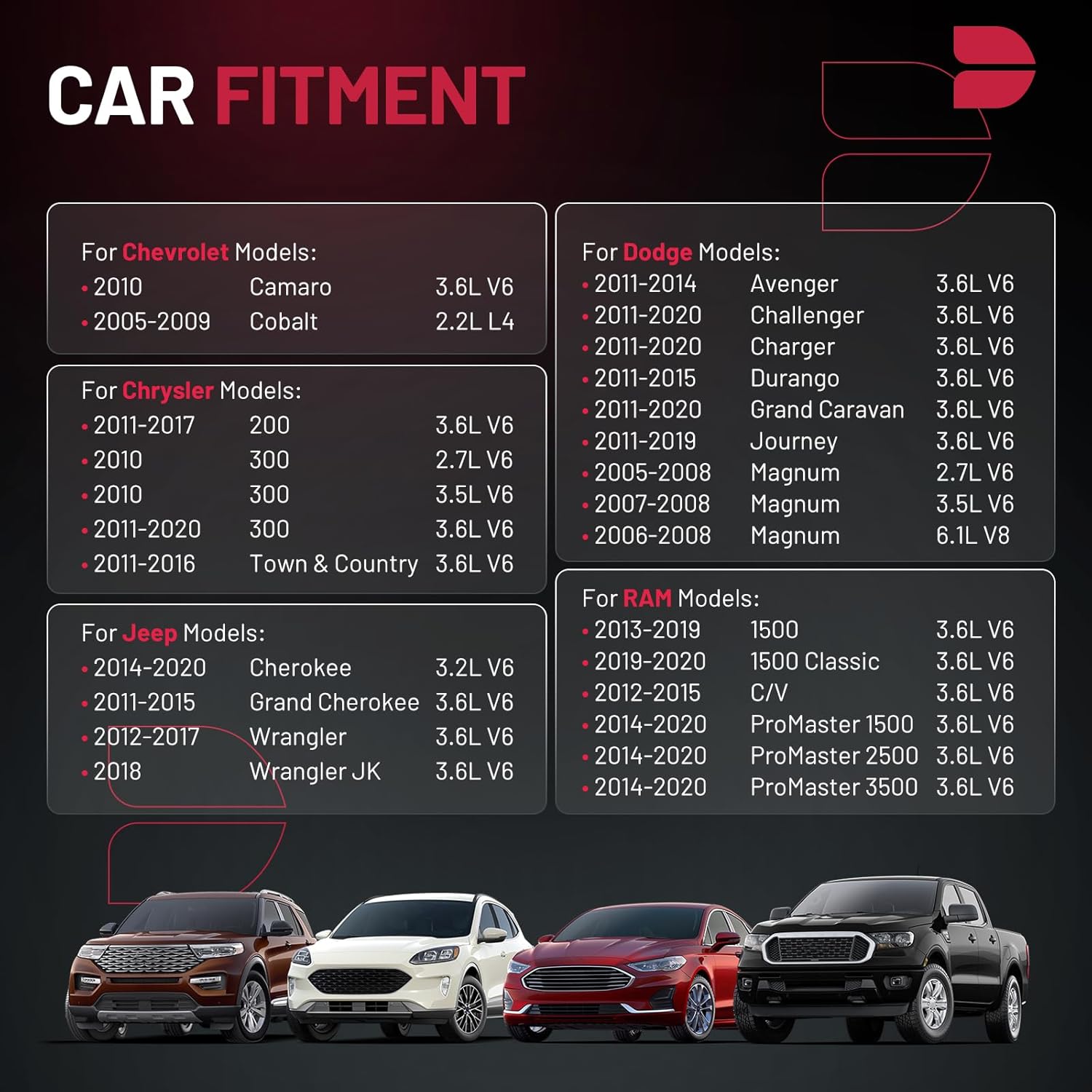 [Compatible Vehicles]: This complete timing chain kit for 3.6L V6 Compatible with Jeep 2014–2020 Cherokee, 2011–2015 Grand Cherokee, 2012–2017 Wrangler, 2018 Wrangler JK; Compatible with Chrysler 11–17 200, 10–20 300, 11–16 Town & Country; Compatible with Dodge 2011–2014 Avenger, 2011–2015 Durango, 2011–2020 Challenger, Charger, Grand Caravan, 2011–2019 Journey, 2005–2008 Magnum; Compatible with Ram 2013–2019 1500, 2019–2020 1500 Classic, 2012–2015 C/V, 2014–2020 ProMaster 1500/2500/3500