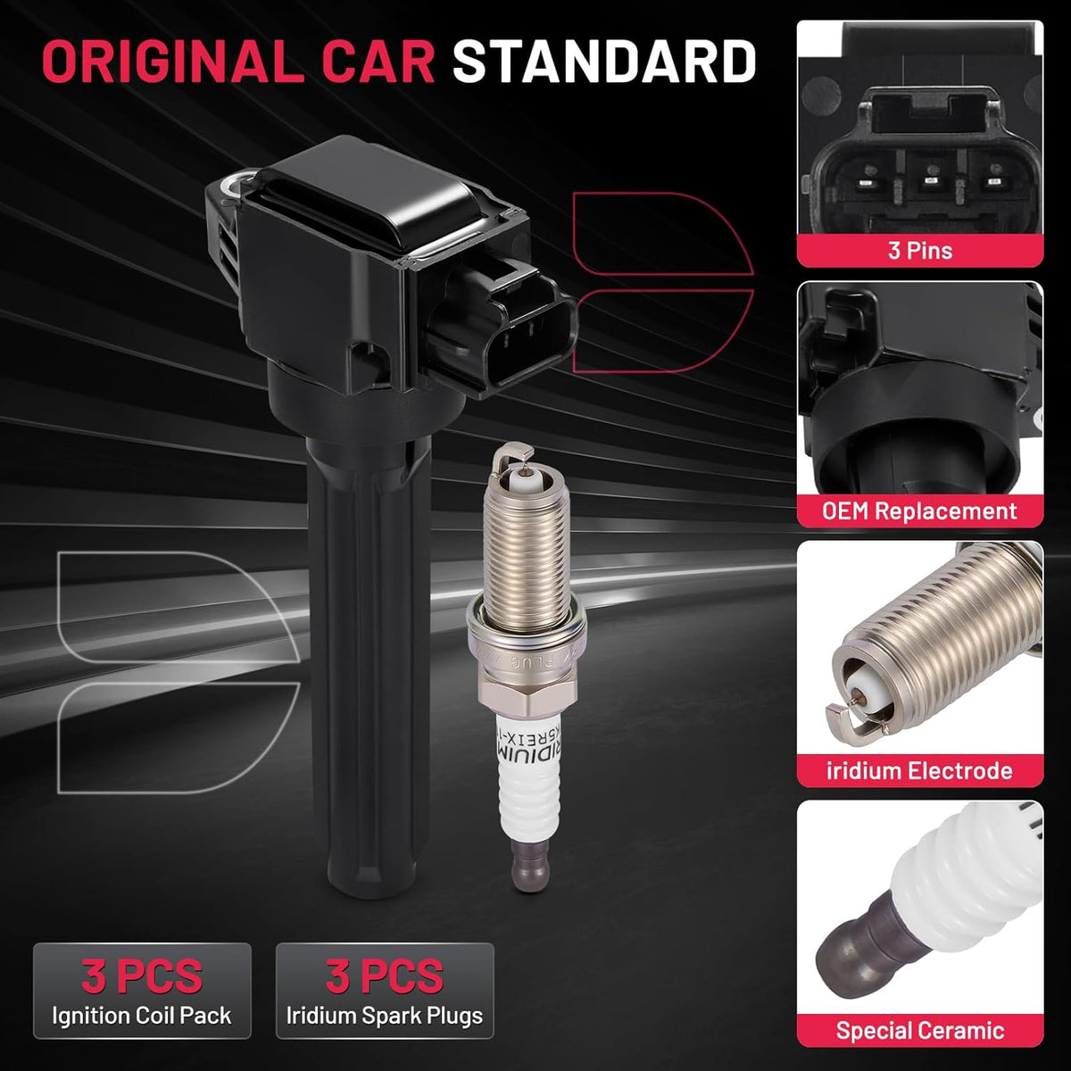 BDFHYK 3 Ignition Coil Pack UF815 and 3 Iridium Spark Plug 5018 Compatible with Mitsubishi Mirage 2014-2015 1.2L l3 Coil for 1832A057 1832A096 FK0443