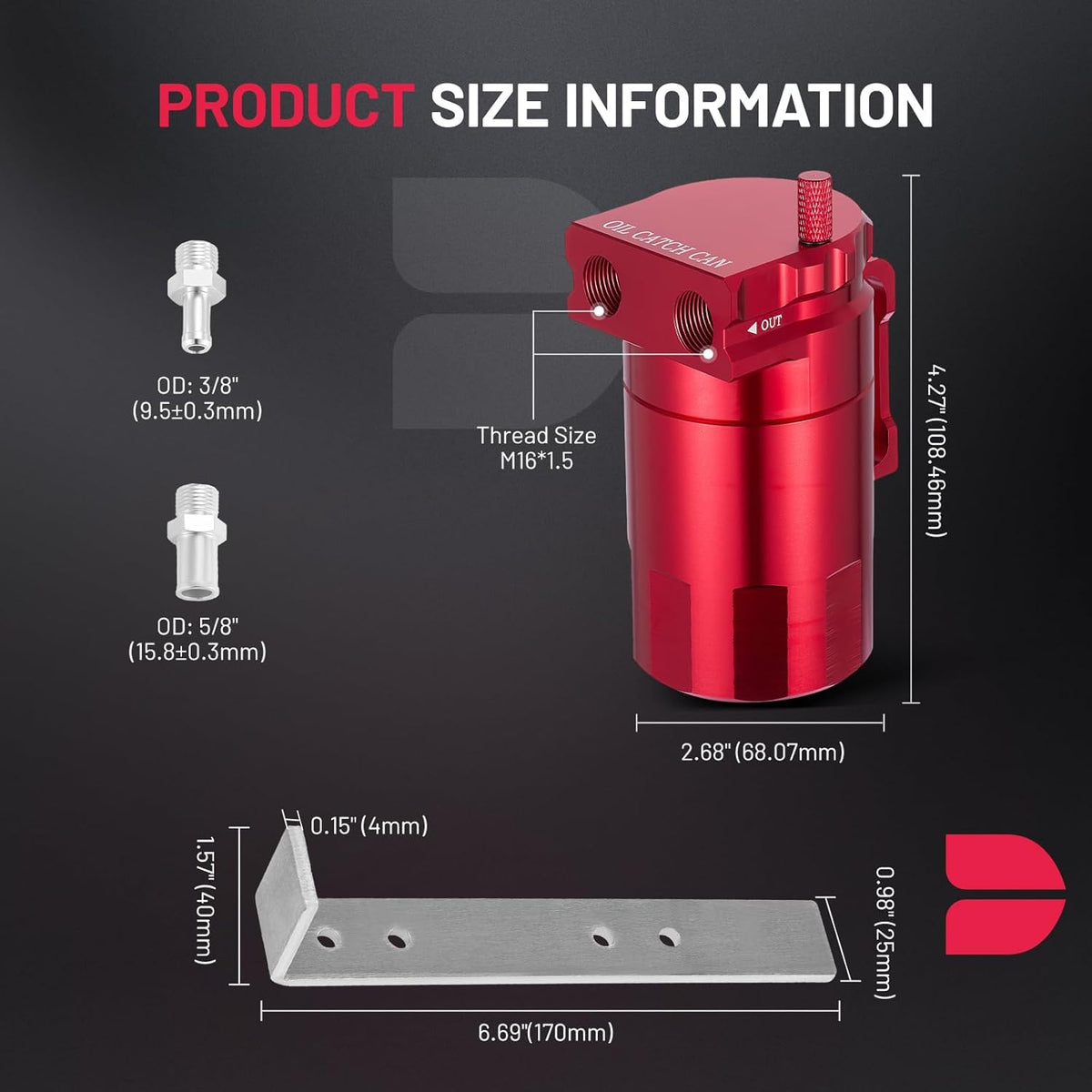 Universal Compatibility: This 300ML oil catch can is designed for universal compatibility, fitting a wide range of vehicles. Please check your engine bay to ensure adequate space before installation