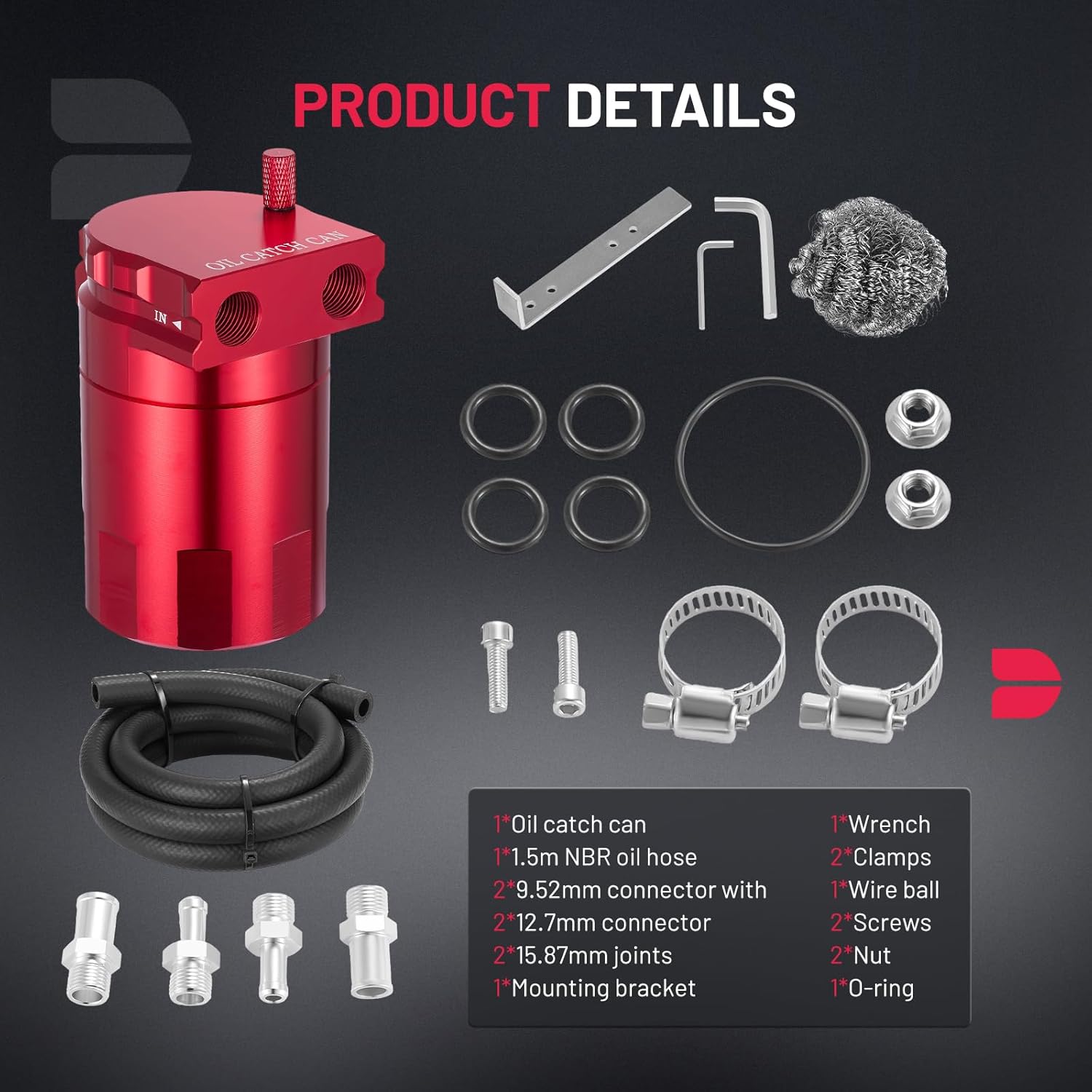 High-Quality Materials: Crafted from T6061 aluminum alloy, this oil catch can is built to last with enhanced strength and durability. The NBR rubber hose ensures reliable performance even in harsh conditions, offering a long lifespan