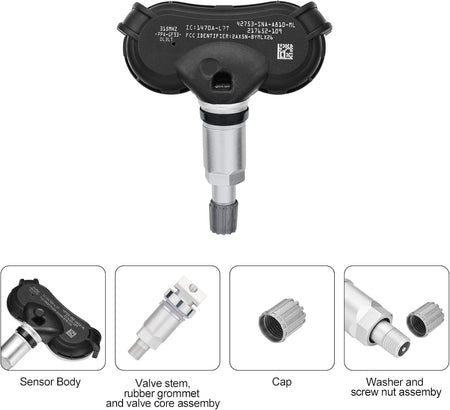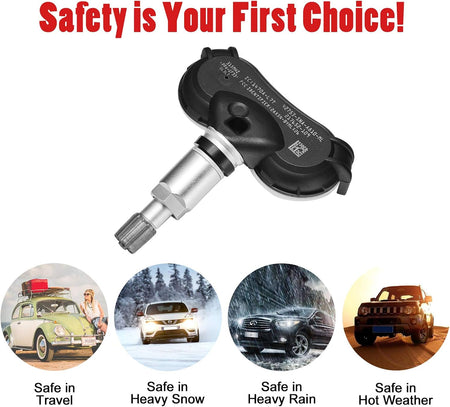 [ ]-This Tire Pressure Monitoring sensor is made from quality components to ensure the reliability, durabilitiy and safety of TPMS. Automotive-grade battery for long service life for over 3 years of normal use, Cutting-edge technology chip best signal strength real-time reading. High temperature resistance (257°F) and low temperature (-49°F) ensure the safety of your car even under harsh conditions.
