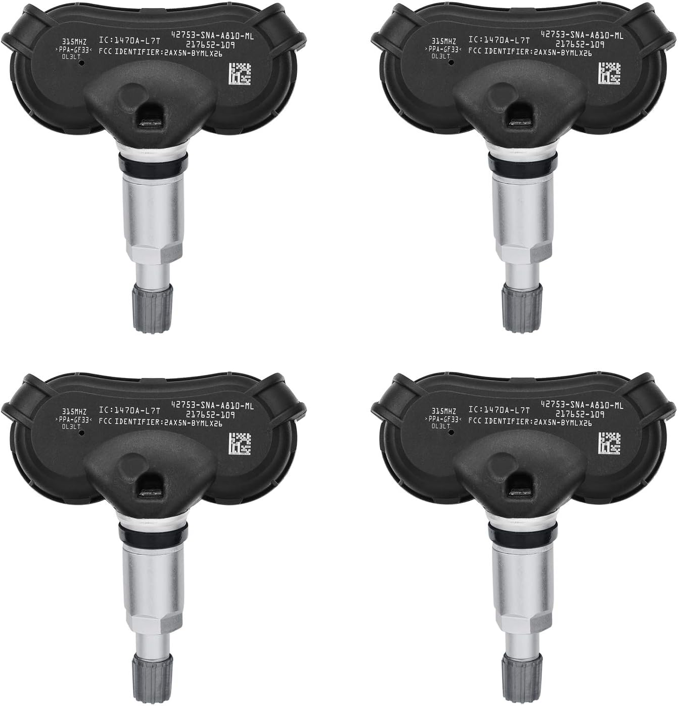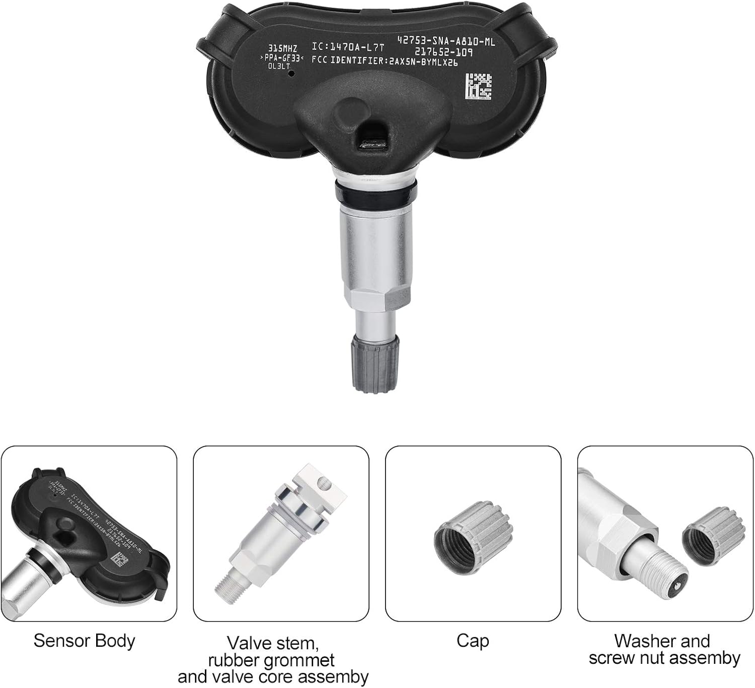 BDFHYK 315MHz Programmed TPMS Tire Pressure Sensor Compatible with Honda 2008-2017 Civic CR-Z Element Fit Insight Odyssey, Acura CSX 2008 2009 2010 2011 2012 2013 2014 .. 2017 OE 42753TR3A81