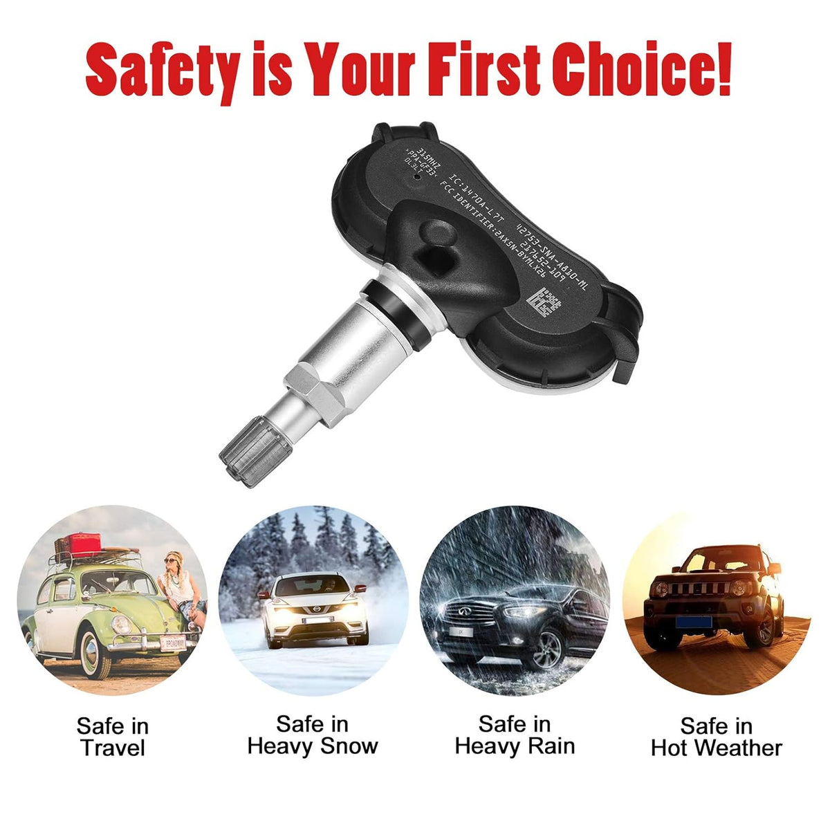 [ ]-This Tire Pressure Monitoring sensor is made from quality components to ensure the reliability, durabilitiy and safety of TPMS. Automotive-grade battery for long service life for over 3 years of normal use, Cutting-edge technology chip best signal strength real-time reading. High temperature resistance (257°F) and low temperature (-49°F) ensure the safety of your car even under harsh conditions.