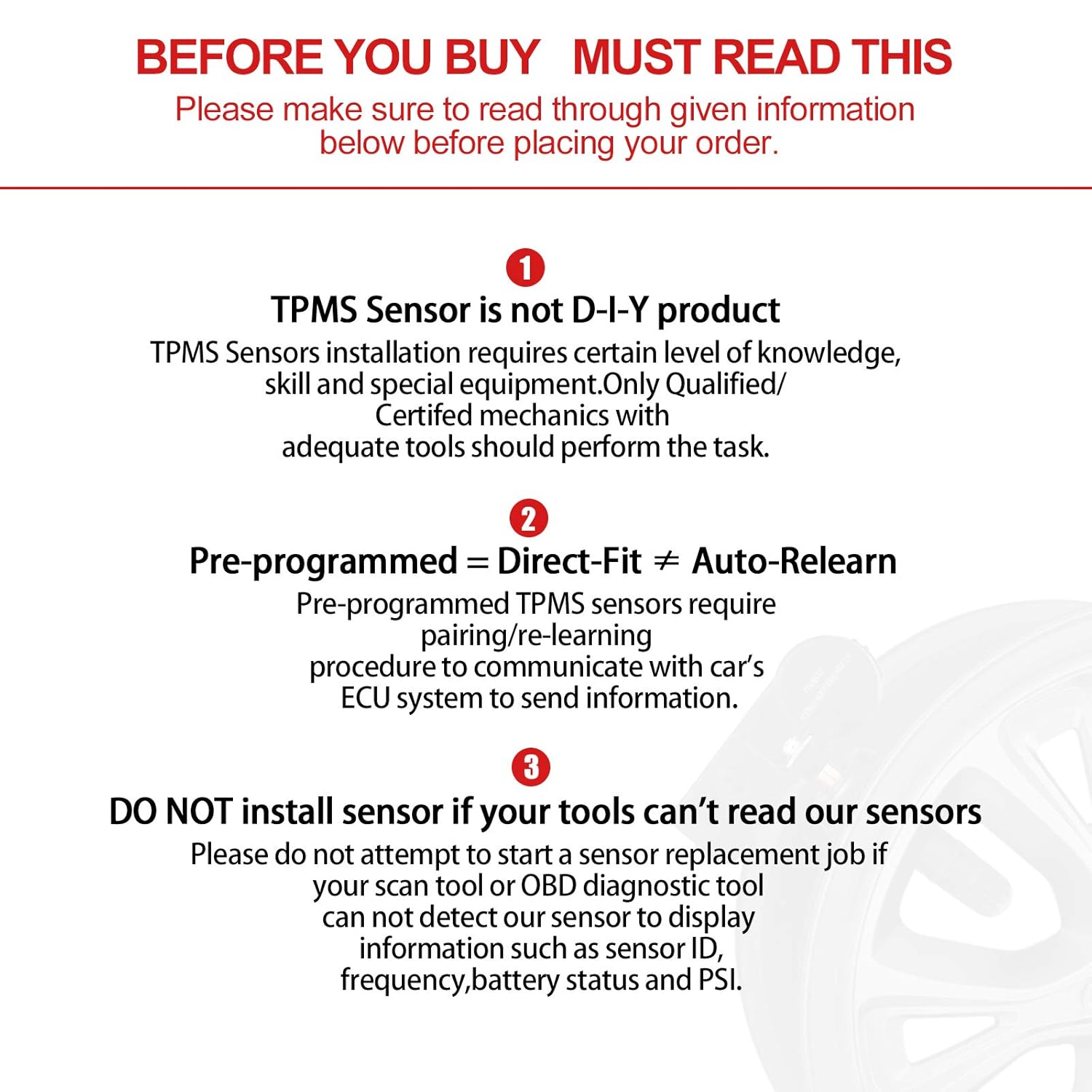 [Customer Service] : 1-year Assurance. All BDFHYK Tire Pressure Monitoring System (TPMS) sensors undergo rigorous testing during manufacturing to ensure top quality. If you have any questions, please do not hesitate to contact us. Your satisfaction is our top priority