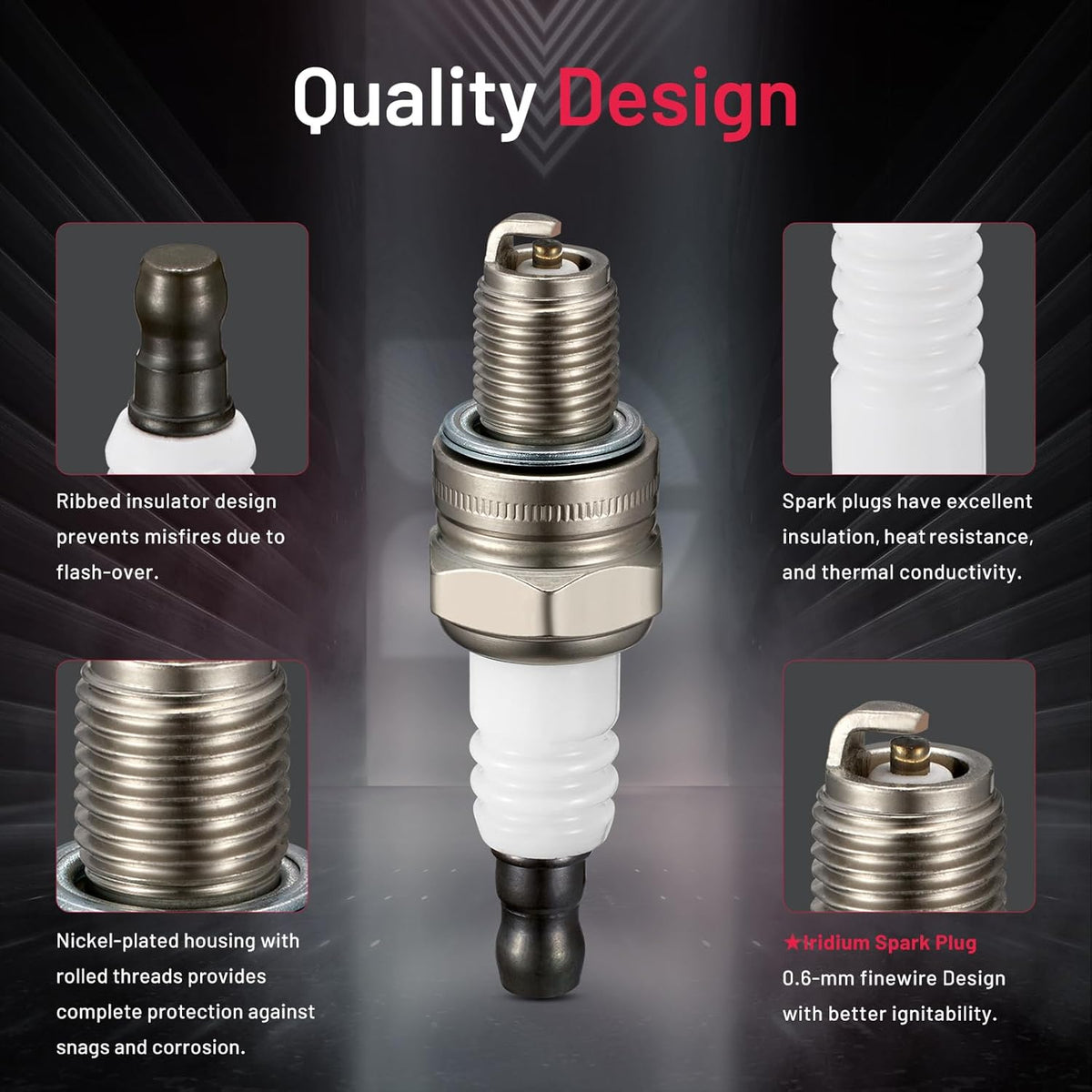 【Relive Performance】:OE standard performance and durability TS16949 certified manufacturer. All center electrodes are made from extremely fine iridium electrodes for good ignition performance. Insulators are made from isostatic ceramics for high density, strength, and good insulation
