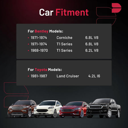 【Compatibility Information】:Spark Plug 3432 compatible with 1981-1987 for Toyota Land Cruiser, 1971-1974 for Bentley Corniche, 1971-1974 for Bentley T1 Series, 1968-1970 for Bentley T1 Series.Please see images or details page for complete Compatibility information
