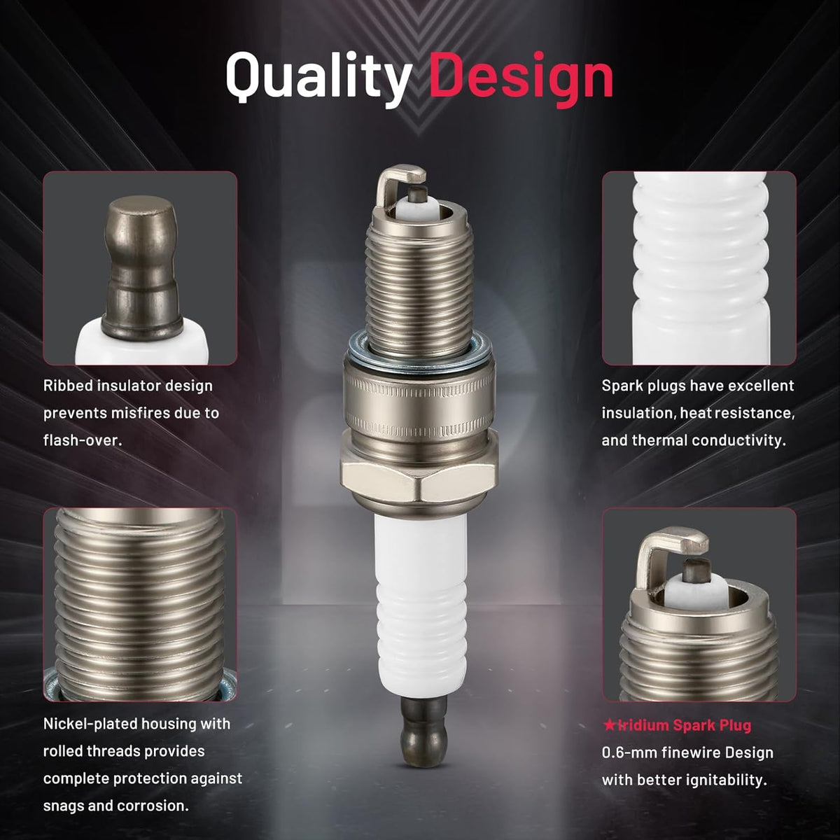 【Spark Plug Features】:BDFHYK Spark plugs with superior ignition performance, faster and more sensitive ignition jumps, significant increase in power performance, saving energy consumption in the ignition process, efficiently adapted to the needs of the car. Exquisite production process, 100% brand new high quality auto parts, OE level durability