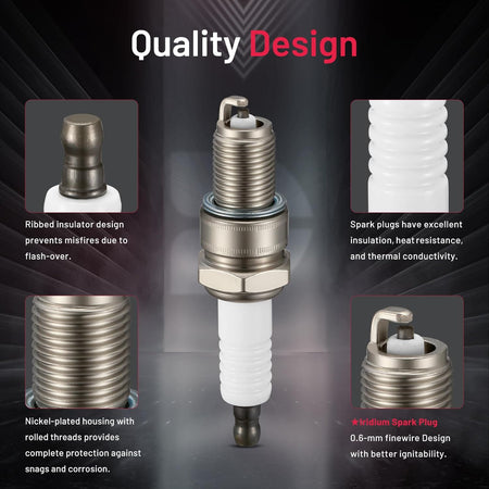 【Relive Performance】:OE standard performance and durability TS16949 certified manufacturer. All center electrodes are made from extremely fine iridium electrodes for good ignition performance. Insulators are made from isostatic ceramics for high density, strength, and good insulation