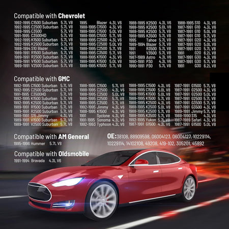 【COMPATIBLE VEHICLES-1】---Our drive belt tensioners are compatible with 1995-1996 AM General Hummer 5.7L; compatible with 1987-1989 Chevrolet Astro 4.3L; compatible with 1989-1994 Chevrolet Blazer 4.3L 5.7L; compatible with 1988-1995 C1500 (Suburban)/C2500(Suburban)/C3500(HD) 4.3L 5.0L 5.7L; compatible with 1987-1991 Chevrolet G10/G20/G30 4.3L 5.0L 5.7L 6.2L; compatible with 1988-1995 Chevrolet K1500(Suburban)/K2500(Suburban)/K3500 4.3L 5.0L 5.7L; compatible with 1990-1991 Chevrolet P30 4.3L 5.7L; compatible with 1989-1991 Chevrolet R1500 Suburban/R2500 Suburban/R3500 5.7L; compatible with 1988-1995 Chevrolet S10 (Blazer) 4.3L.