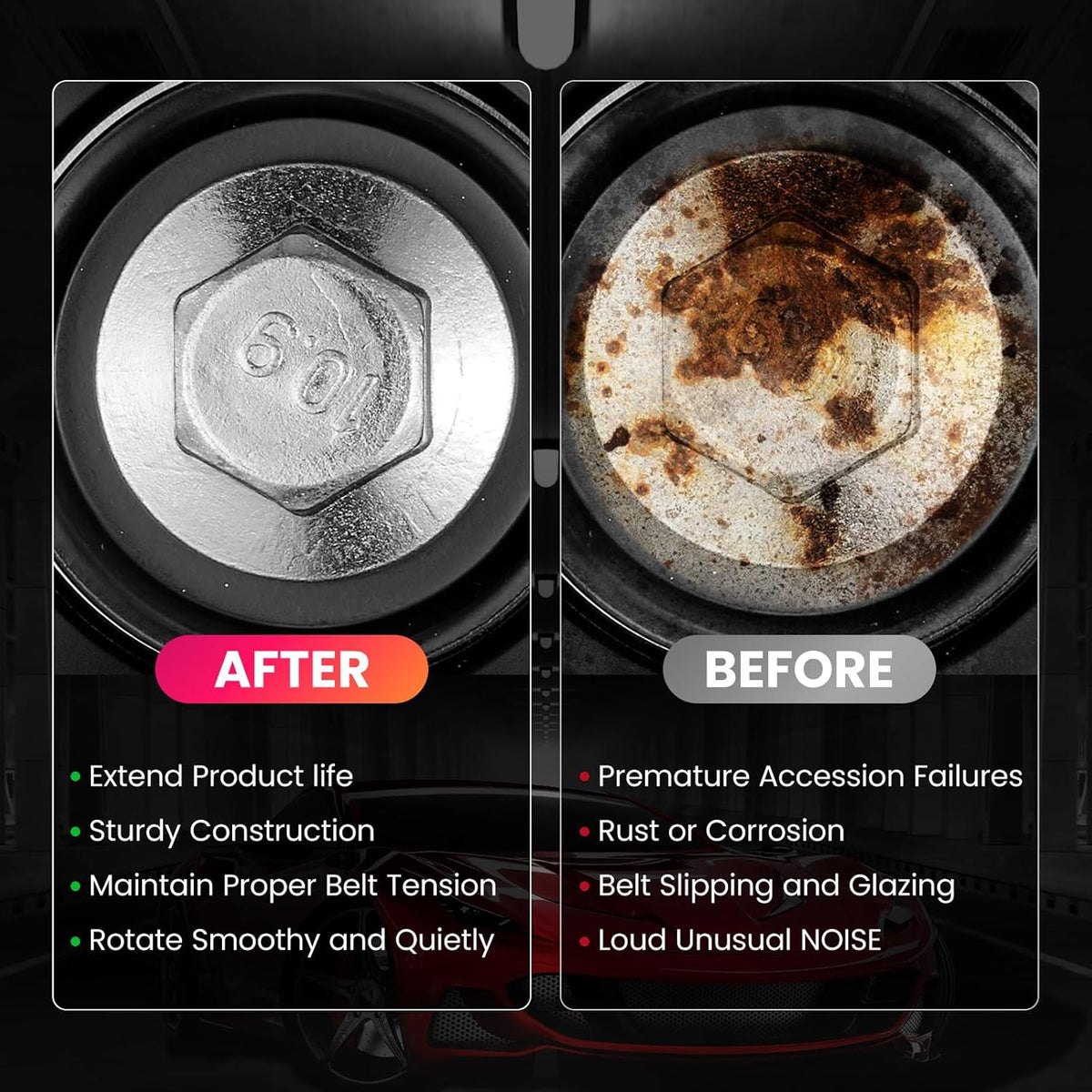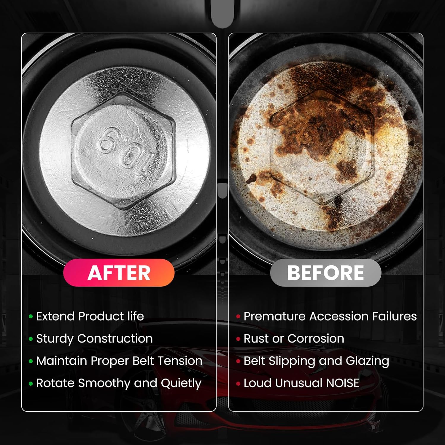 【STABILITY AND RELIABILITY】---The drive belt tensioner is to adjust the tightness of the belt to maintain the stability and reliability of your car's transmission system more stable and reliable.BDFHYK drive belt tensioner can offer you a professional user experience and make your car like new. You may choose it with confidence.