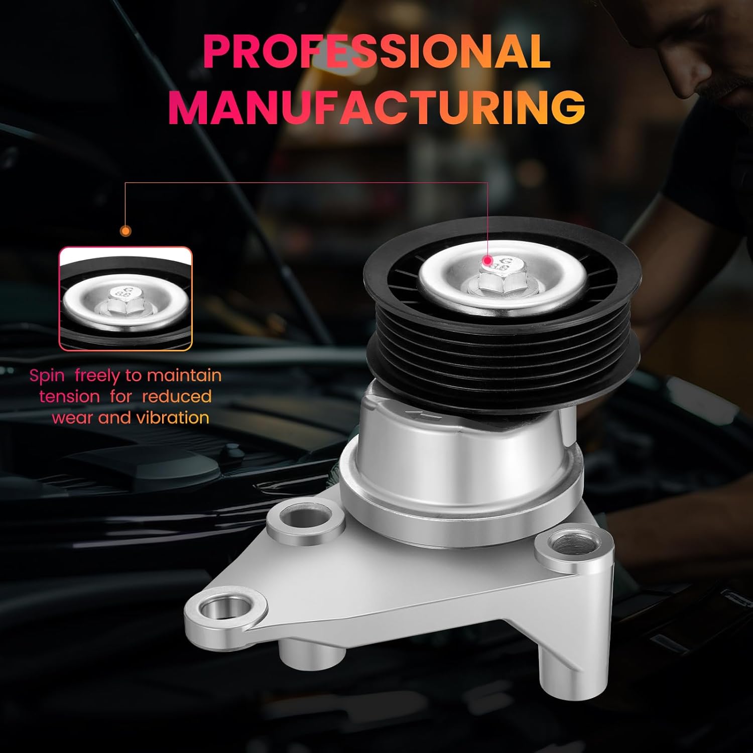 【COMPATIBLE VEHICLES 1】---Our drive belt tensioners are fitting for 2002-2008 Chevrolet Avalanche(1500);2004 Chevrolet Cargo Van;2003-2008 Chevrolet Express 1500/3500;1999-2008 Chevrolet Silverado 1500(Classic);1999-2008 Chevrolet 1500/2500/2500 HD(Classic);2001-2008 Chevrolet Silverado 3500(Classic/HD);2003-2006 Chevrolet SSR;2000-2008 Chevrolet Suburban 1500/2500;2000-2008 Chevrolet Tahoe;2003-2009 Chevrolet Trailblazer (EXT);2004-2007 Chevrolet W3500/W4500 Tiltmaster;2003-2008 H2/H3