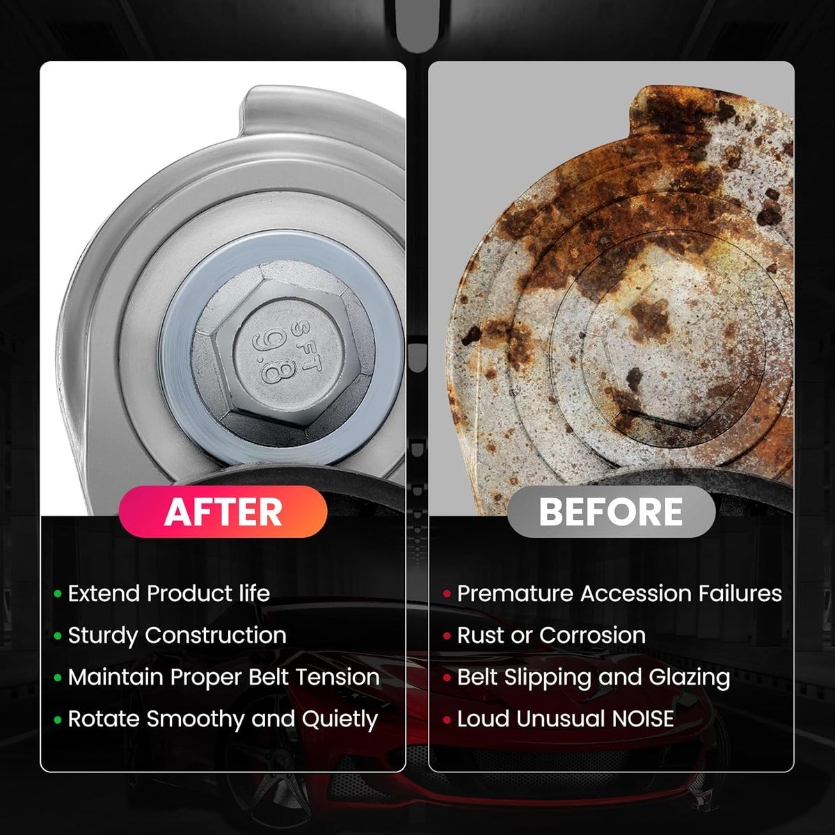【COMPATIBLE VEHICLES】Our drive belt tensioners compatible with Pontiac GTO 2005-2006 V8 6.0L 5.7L; compatible with Pontiac Firebird 1998-2002 V8 5.7L; compatible with Chevrolet Corvette 1997-2004 V8 5.7L; compatible with Chevrolet Camaro 1998-2002 V8 5.7L. Please confirm this item fits your vehicle before purchasing.