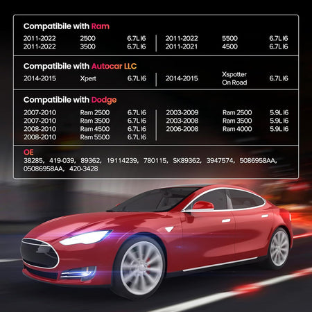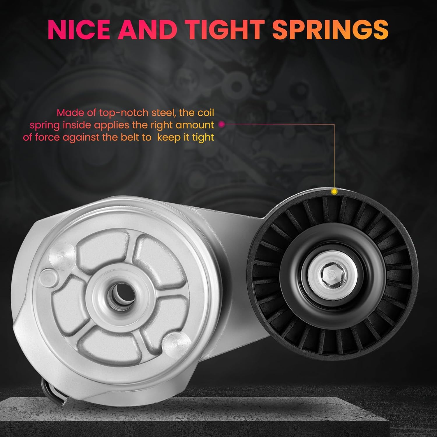 【COMPATIBLE VEHICLES 】---Our drive belt tensioners are compatible with Ram 2500/3500/4500/5500 2011-2022 6.7L l6; compatible with Autocar LLC. Xpert/Xspotter On Road 2014-2015 6.7L l6; compatible with Dodge Ram 2500/3500/4500/5500 2006-2010 6.7L l6; compatible with Sterling Truck Bullet 45 2008-2010 6.7L l6. Please confirm this item fits your vehicle before purchasing (Check Fitment Data Above or see the description below).