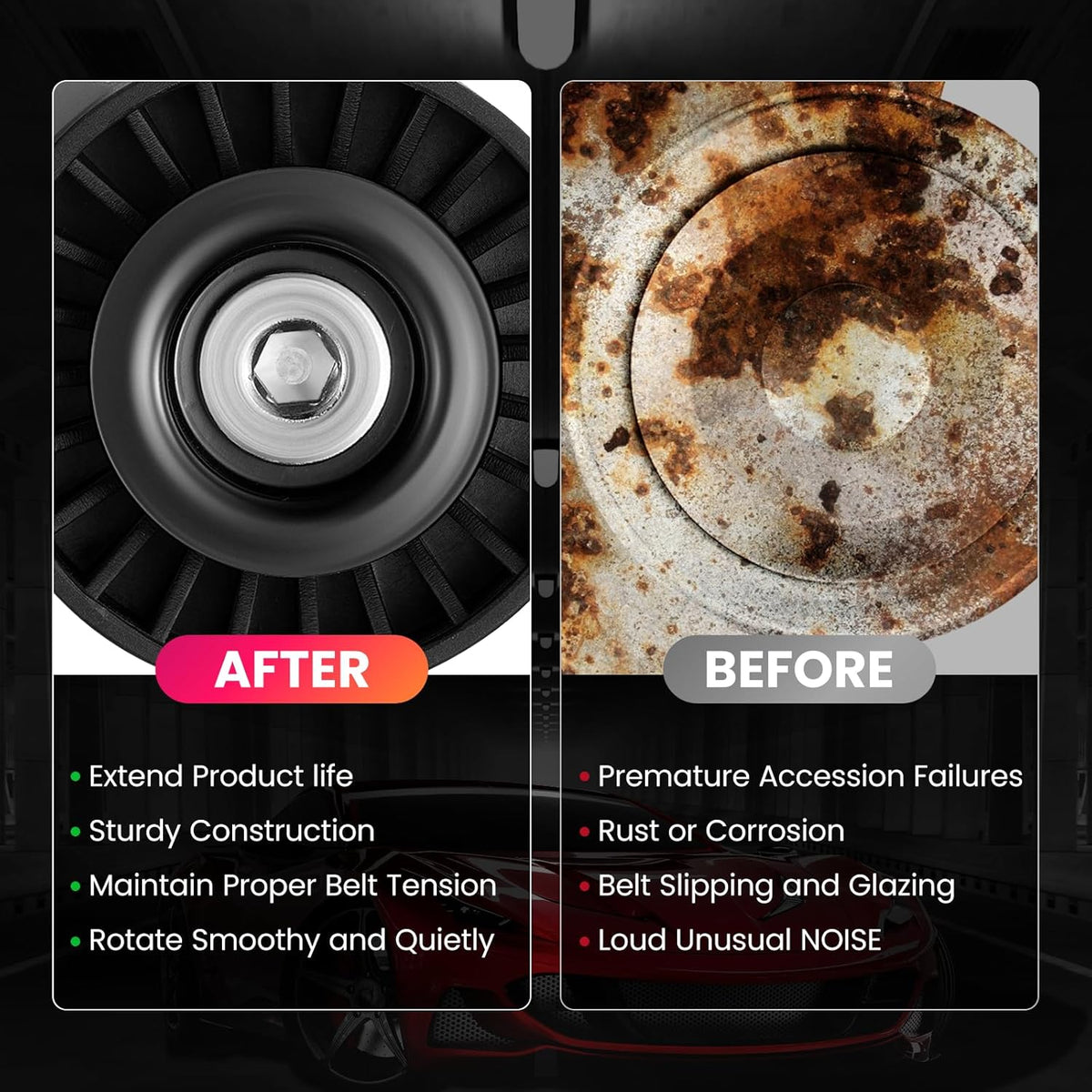 【STABILITY AND RELIABILITY】---The drive belt tensioner is to adjust the tightness of the belt to maintain the stability and reliability of your car's transmission system more stable and reliable.BDFHYK drive belt tensioner can offer you a professional user experience and make your car like new. You may choose it with confidence.