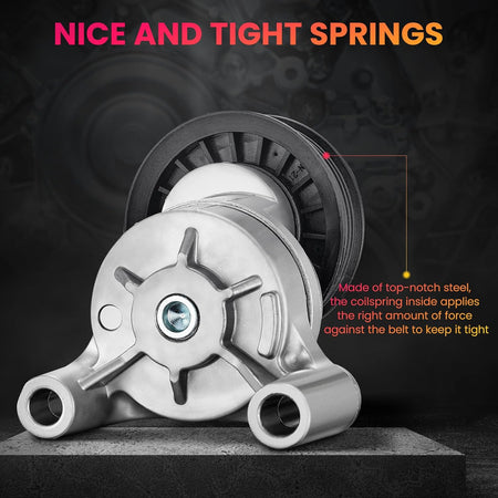 【STABILITY AND RELIABILITY】The drive belt tensioner is to adjust the tightness of the belt to maintain the stability and reliability of your car's transmission system more stable and reliable.BDFHYK drive belt tensioner can offer you a professional user experience and make your car like new. You may choose it with confidence.