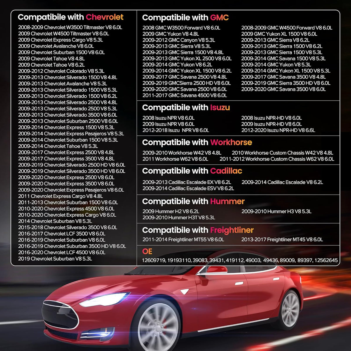 【FITMENT】Compatible with Cadillac Escalade Escalade ESV Escalade EXT; Compatible with Chevrolet Express 1500/2500/3500/4500 Express Pasajeros LCF 3500/4500 Express Cargo Silverado 2500/3500 HD Suburban Suburban 1500/3500 HD Silverado 1500/2500/3500 Colorado Avalanche Tahoe W3500/W4500 Tiltmaster; Compatible with Freightliner MT45; Compatible with GMC Savana 1500/2500(HD)/3500(HD)/4500 Yukon (XL 1500/2500) Canyon W3500/W4500 Forward; Compatible with H2 H3 H3T; Compatible with Isuzu NPR NPR-HD; Compatible with Workhorse W42 W62.