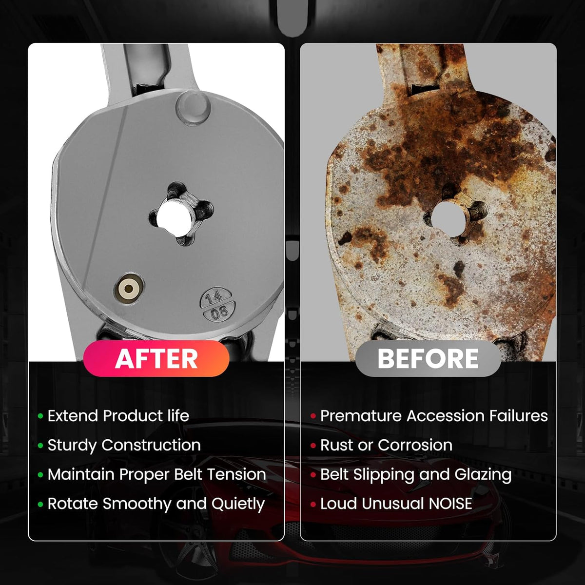 【STABILITY AND RELIABILITY】---The drive belt tensioner is to adjust the tightness of the belt to maintain the stability and reliability of your car's transmission system more stable and reliable.BDFHYK drive belt tensioner can offer you a professional user experience and make your car like new. You may choose it with confidence.